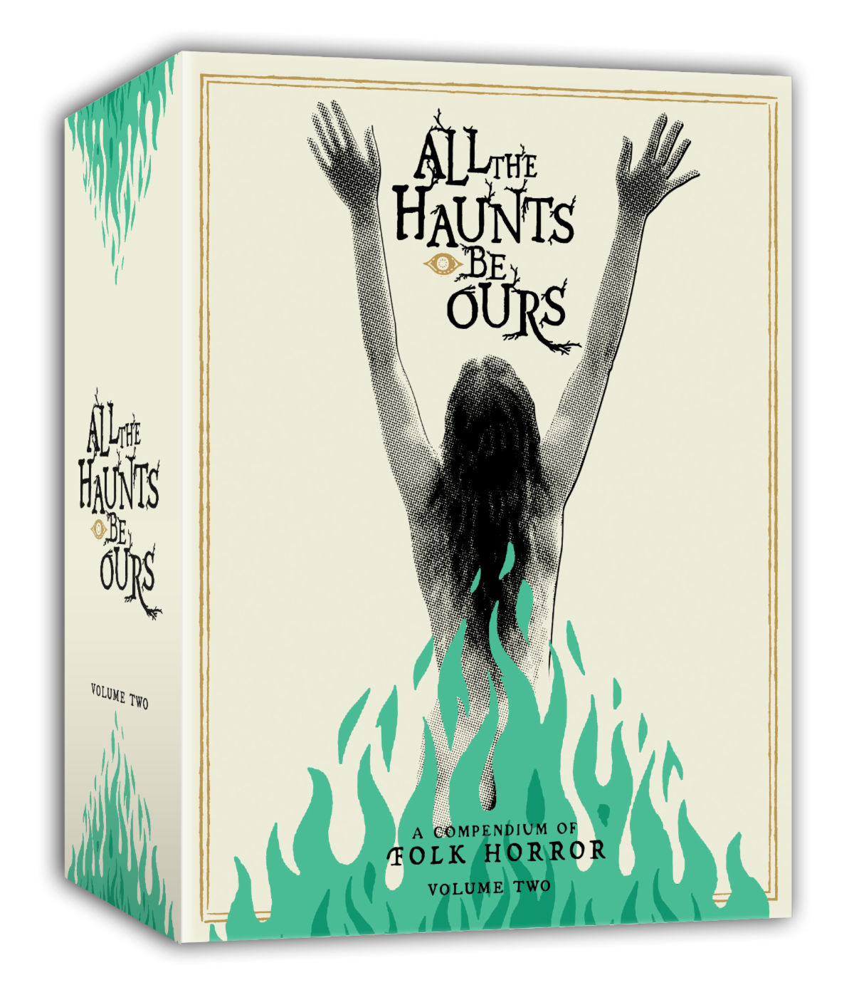 Severin Films Announces the Follow-up to the Most Successful Boxed Set in Company History with ALL THE HAUNTS BE OURS: A COMPENDIUM OF FOLK HORROR VOLUME 2: "Unquiet spirits have gathered once again: ALL THE HAUNTS BE OURS: A COMPENDIUM OF FOLK HORROR VOLUME TWO brings together 24 films representing 18 countries for more of the best-loved, rarely seen, thought-lost and brand-new classics of folk horror, most making their disc debuts including the North American Disc Premieres of the Severin Films Original Productions TO FIRE YOU COME AT LAST directed by Sean Hogan and the documentary SUZZANNA: THE QUEEN OF BLACK MAGIC directed by David Gregory, which will have its World Premiere at the Sitges Film Festival on October 12th. The set also features 55+ combined hours of new and archival Special Features including trailers, interviews, audio commentaries, short films, video essays, historical analyses and bonus feature-length films; a 252-page hardcover of newly commissioned folk horror fiction by luminaries that include Ramsey Campbell, Cassandra Khaw and Eden Royce with illustrations by Drazen Kozjan, and much more, all curated and produced by WOODLANDS DARK AND DAYS BEWITCHED creator Kier-La Janisse.