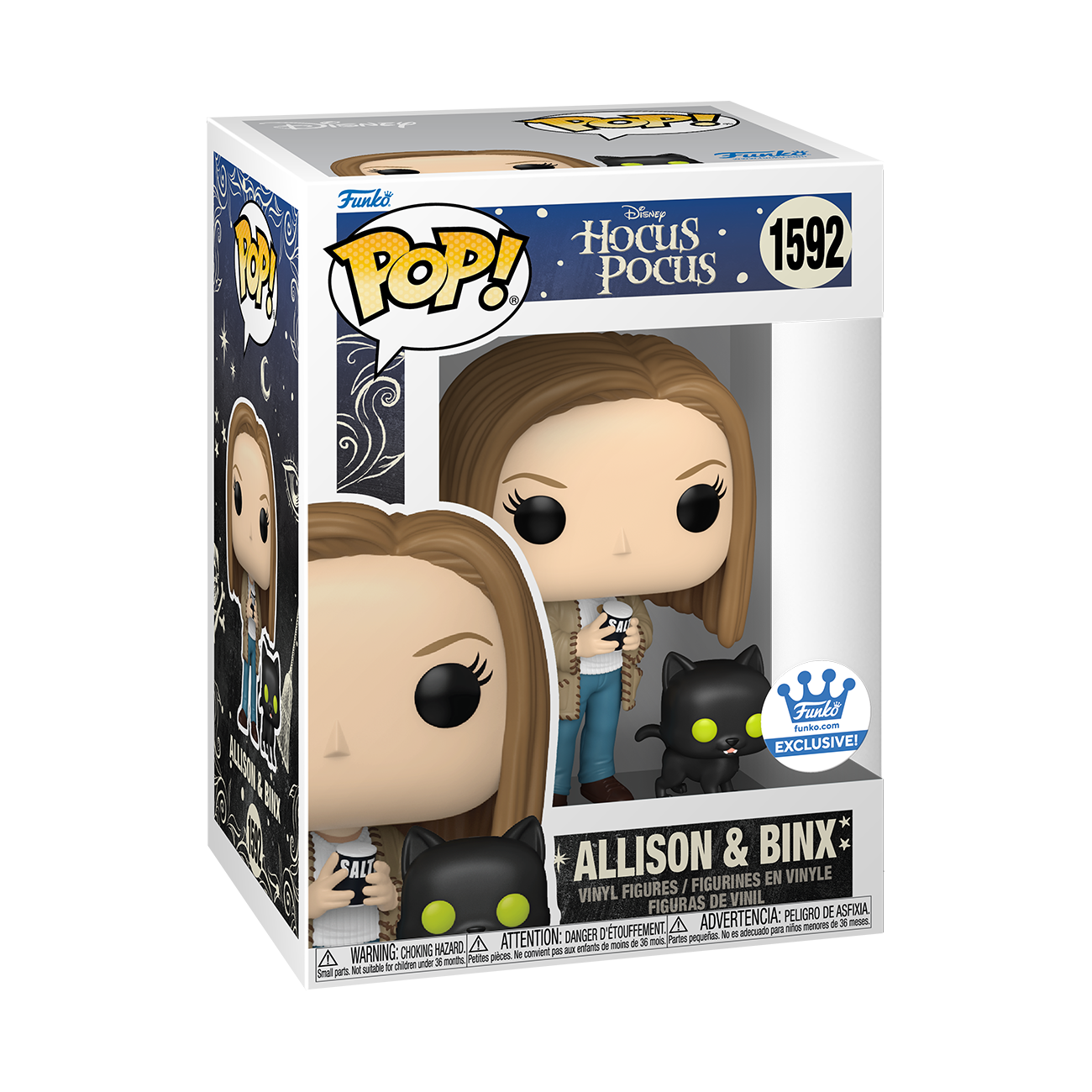 "The Sanderson Sisters are running amok! Armed with a box of salt, POP! Allison is ready to help POP! Binx defeat the wicked trio of witches. Complete your Hocus Pocus lineup by welcoming this exclusive POP! & Buddy duo to your Disney collection. Vinyl figures are approximately 4.15 and 1.75-inches tall."
