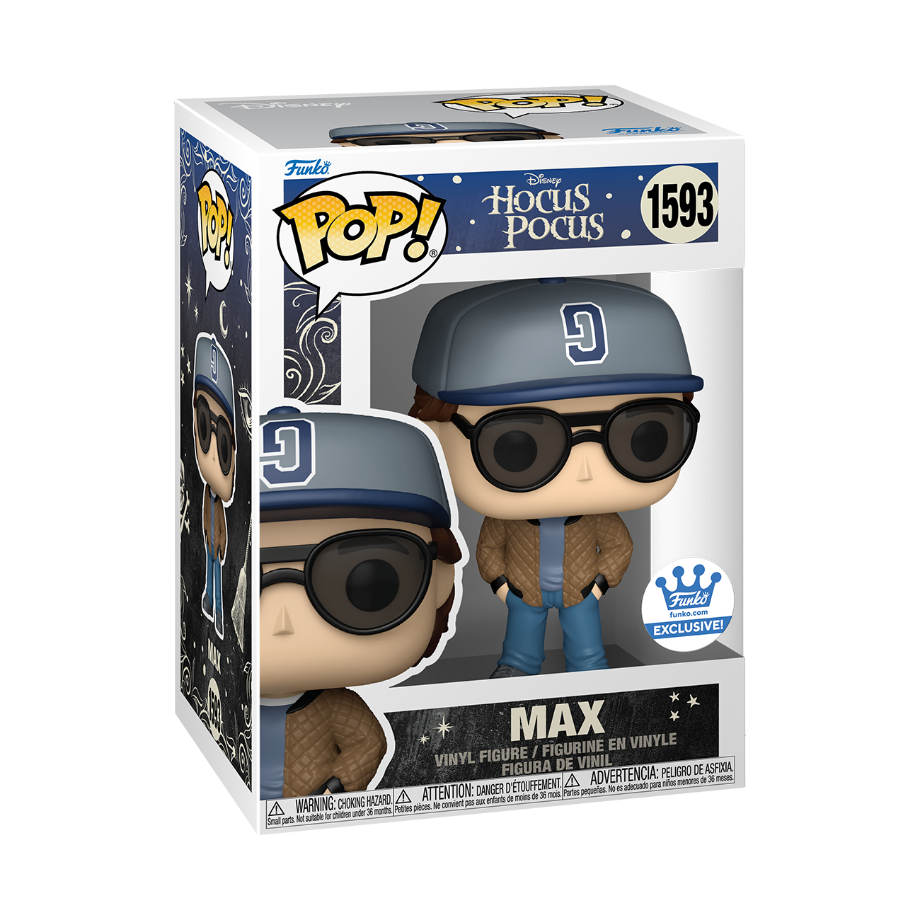 "The Sanderson Sisters are running amok! Dressed in his Little Leaguer costume, this exclusive POP! Max is ready to help defeat the wicked trio of witches. Complete your Hocus Pocus lineup by welcoming him to your Disney collection. Vinyl figure is approximately 4.15-inches tall."