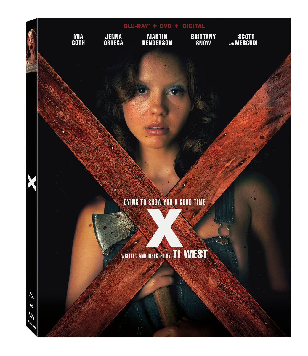 Blu-ray Combo Pack (plus DVD and Digital) and DVD, from Lionsgate. From critically acclaimed director Ti West (The Innkeepers, The Sacrament), the horror film stars Mia Goth (A Cure for Wellness, Suspiria, Emma.), Brittany Snow (Prom Night, Pitch Perfect, Pitch Perfect 2), Jenna Ortega (“You,” 2022’s Scream, The Babysitter: Killer Queen) as well as Grammy Award® nominee Scott Mescudi (better known as Kid Cudi, Don’t Look Up). X will be available on Blu-ray Combo Pack and DVD will be available for the suggested retail price of $39.99 and $29.96, respectively.