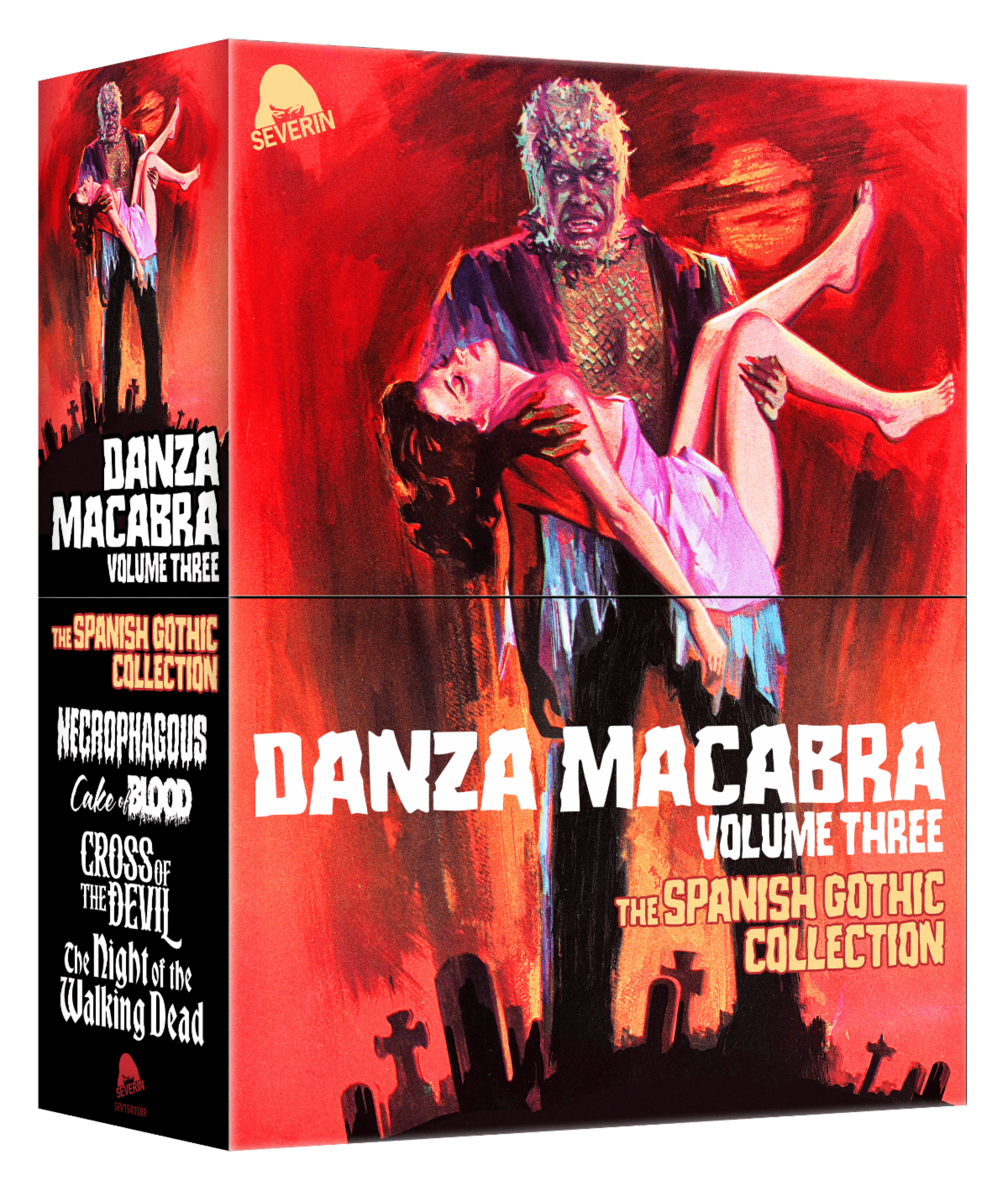 SEVERIN FILMS GOES GOTH ON JUNE 4TH WITH DANZA MACABRA VOLUME 3: THE SPANISH GOTHIC COLLECTION: "Coming June 4th! DANZA MACABRA VOLUME 3: THE SPANISH GOTHIC COLLECTION is the latest in our acclaimed series of Gothic Horror Blu-ray box sets and the first to focus on Spain’s tradition of Gothic Horror, which – particularly during the Franco dictatorship – was characterized by daring concepts, lush visuals, extreme sexuality, and a startling aestheic all its own. These four classic shockers from the 1970s represent the genre at its most audacious: In NECROPHAGOUS, the debut feature by writer/director Miguel Madrid, a fractured family in a crumbling castle conceals a grisly graveyard secret. The anthology film CAKE OF BLOOD – never previously available outside of Spain – presents a quartet of supernatural tales by four young filmmakers. Hammer Films director John Gilling brings his inimitable style to the occult thriller in CROSS OF THE DEVIL. And a terminally ill woman is enticed by eternal life in Leon Klimovsky’s vampire masterwork, NIGHT OF THE WALKING DEAD. Each film in this collection has been scanned from its original negative – with over 8 hours of Special Features – for the first time ever in America.