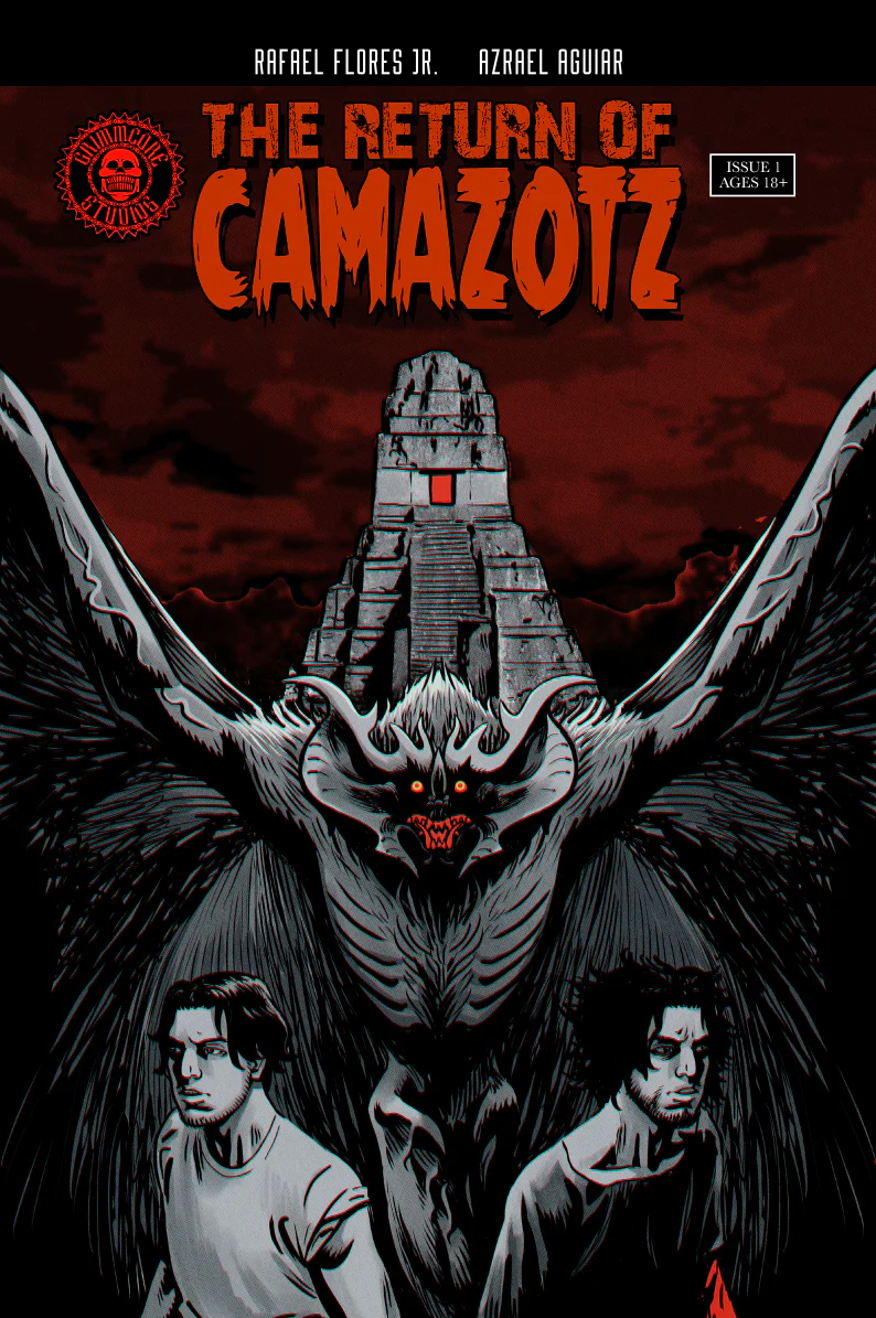 THE RETURN OF CAMAZOTZ: "‘The Return of Camazotz’ is a gothic horror comic inspired by Mayan mythology published by Grimmcore Studios. The story follows twin brothers who are attacked by the ancient Mayan vampire god Camazotz during a trip to Mexico.
