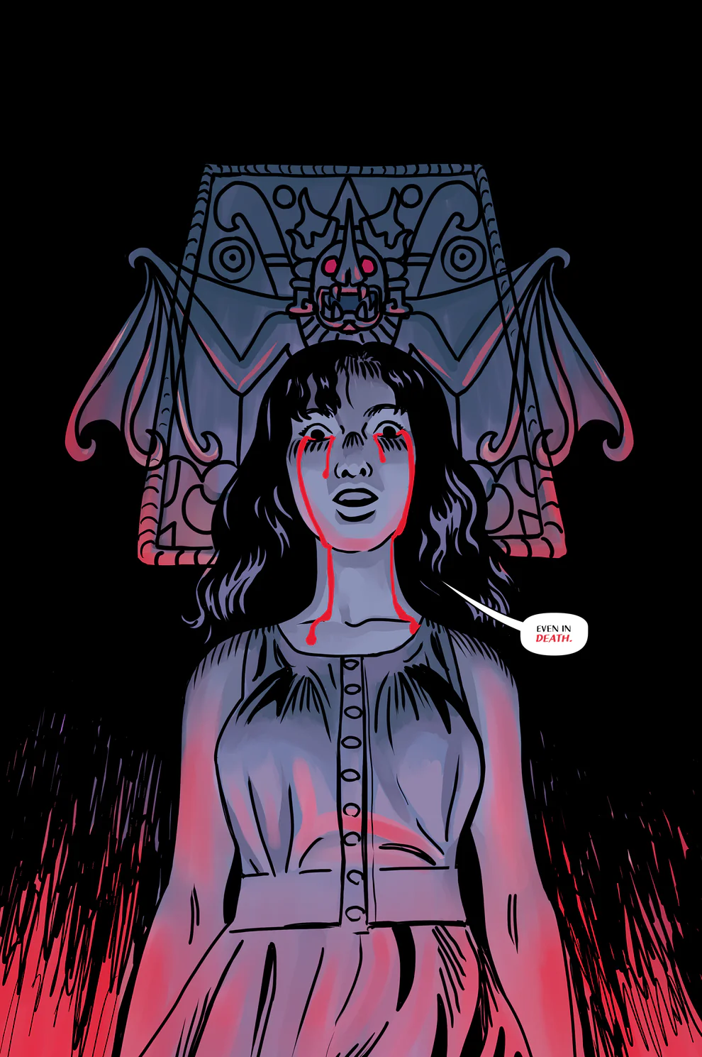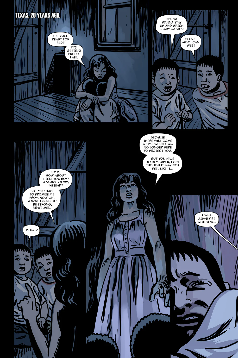 This bloody horror comic is inspired by the legend of Camazotz, a Mesoamerican deity of bats and blood that was worshipped by the Mayans through ritual sacrifice. Chicano writer Rafael Flores Jr. partnered with Brazilian artist Azrael Aguiar to create this series, which was first published as a short comic and was a finalist in the Negative Space Short Comics competition in 2022. Grimmcore Studios’ founder and editor Daniel Grimm picked the story from there and worked with the creative team in developing it into a full-fledged graphic novel, which will be published in 3 parts. Issue 1 was published through Kickstarter in 2023, garnering the attention of fans and critics..."