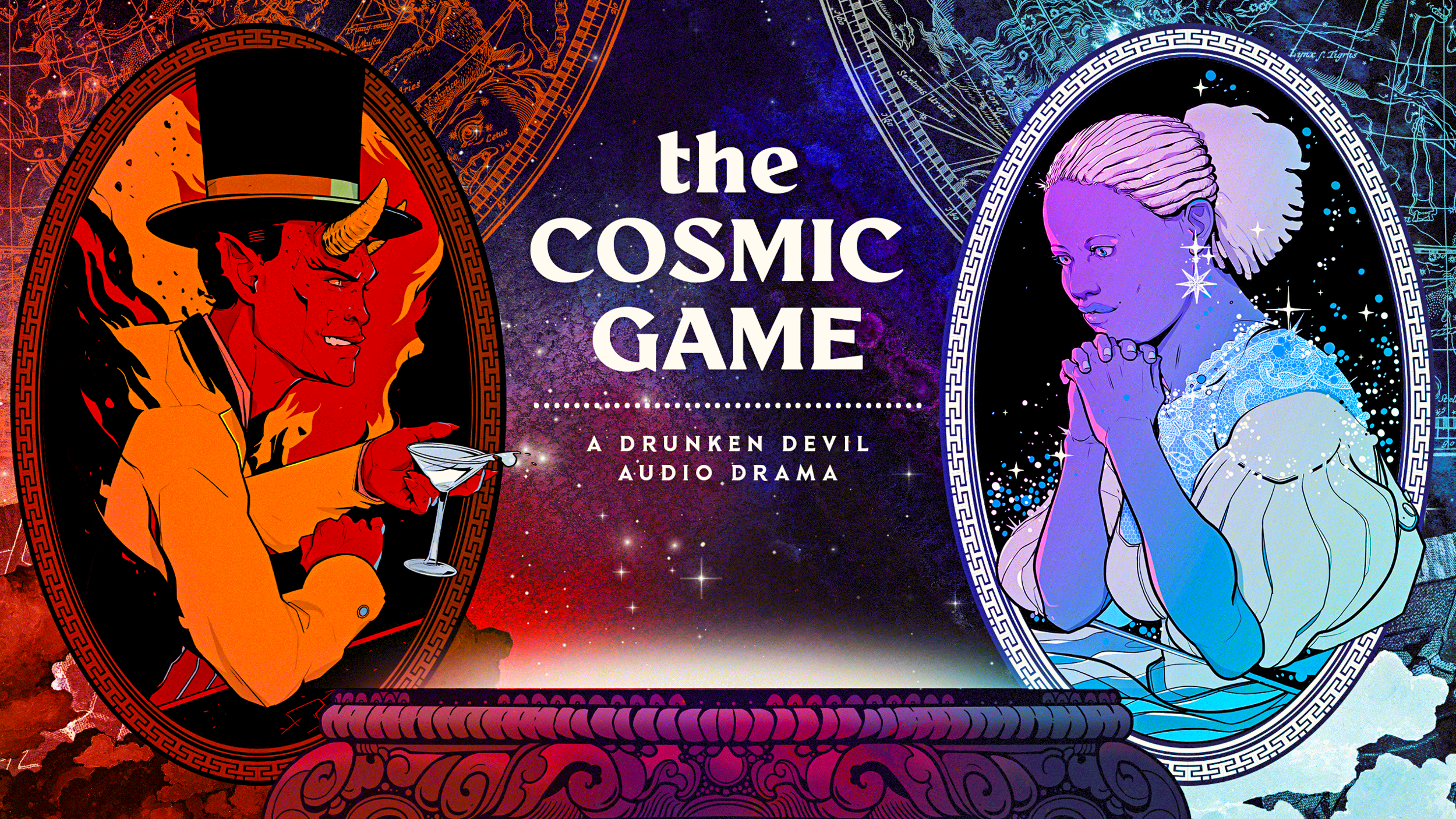 After reaching its initial goal with unexpected speed, Drunken Devil has embarked on a series of “stretch goals” to further fund the nine episodes of THE COSMIC GAME’s first season. In the supernatural drama, God and the Devil challenge each other to a game of wit and influence, with humanity’s fate hanging in the balance. As they journey from the Garden of Eden to New Orleans’ infamous Storyville circa 1917, listeners will meet a host of colorful characters who plunge them into an otherworldly conflict filled with bloody battles, dark magic and violent cults.