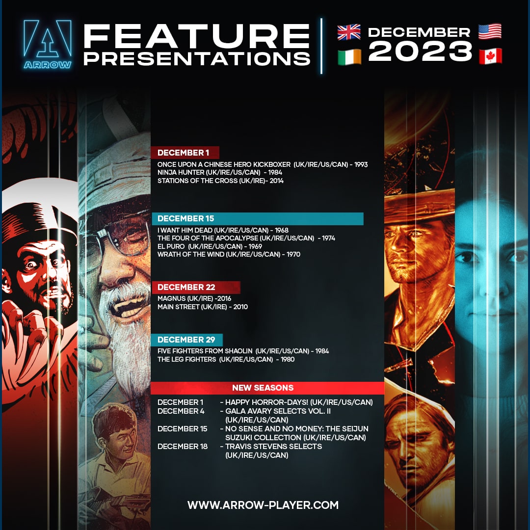 Streaming December 1: ARROW Announces December 2023 SVOD Lineup: "London, UK - Arrow Video is excited to announce the December 2023 lineup of their subscription-based ARROW platform, available to subscribers in the US, Canada, the UK and Ireland.