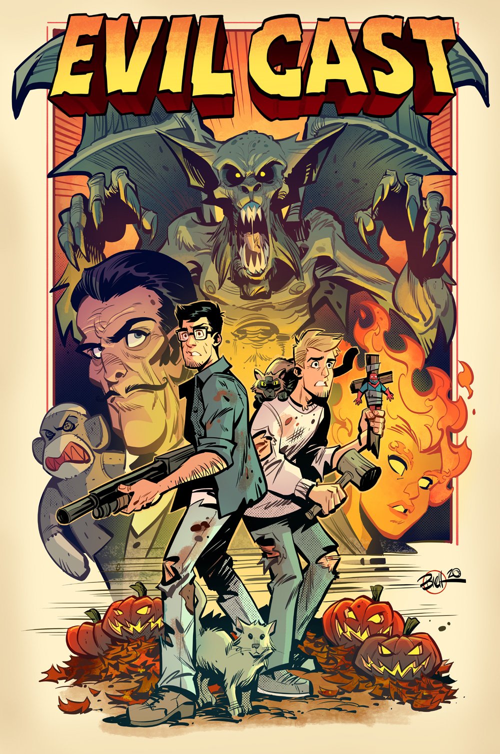 EVIL CAST Comic Book Series: "Have you ever wondered if you’d survive a horror story? Most horror fans have—it’s hard not to, especially when the genre is filled with characters prone to bad decision-making and protagonists who usually, inexplicably in the modern world, lack any awareness of horror movie tropes or monsters. These thoughts crossed the mind of author, filmmaker, and podcaster Kyle Stück (Give Me to the Waves, Humming Fools) more than once, and eventually in 2019 they resulted in the creation of Evil Cast, a love letter to horror, its conventions, and its fans.