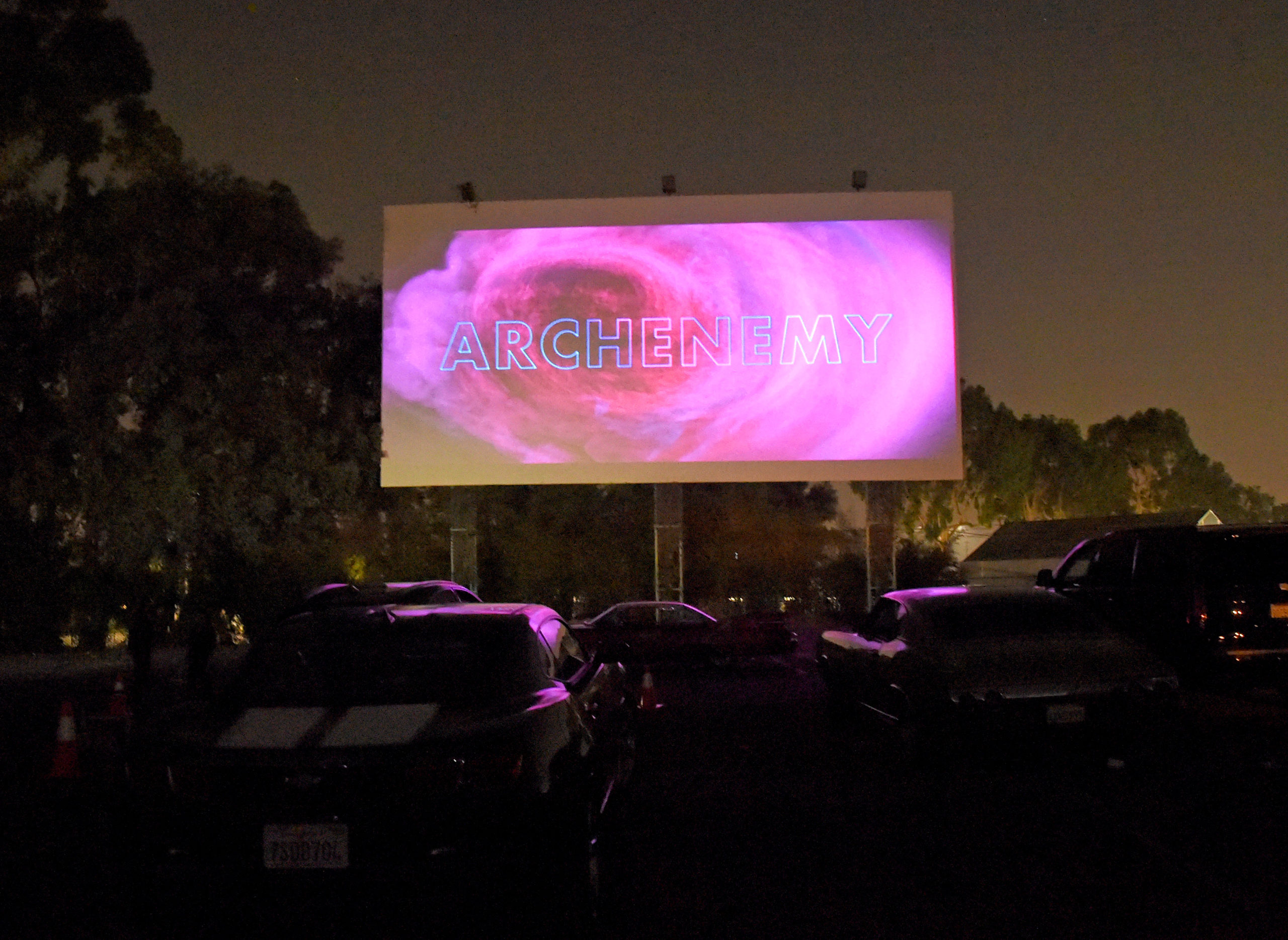 Photos from the ARCHENEMY World Premiere: "ARCHENEMY has its World Premiere at the Beyond Fest Drive In Screening on Wednesday, October 7, 2020 at the Mission Tiki Drive-In.