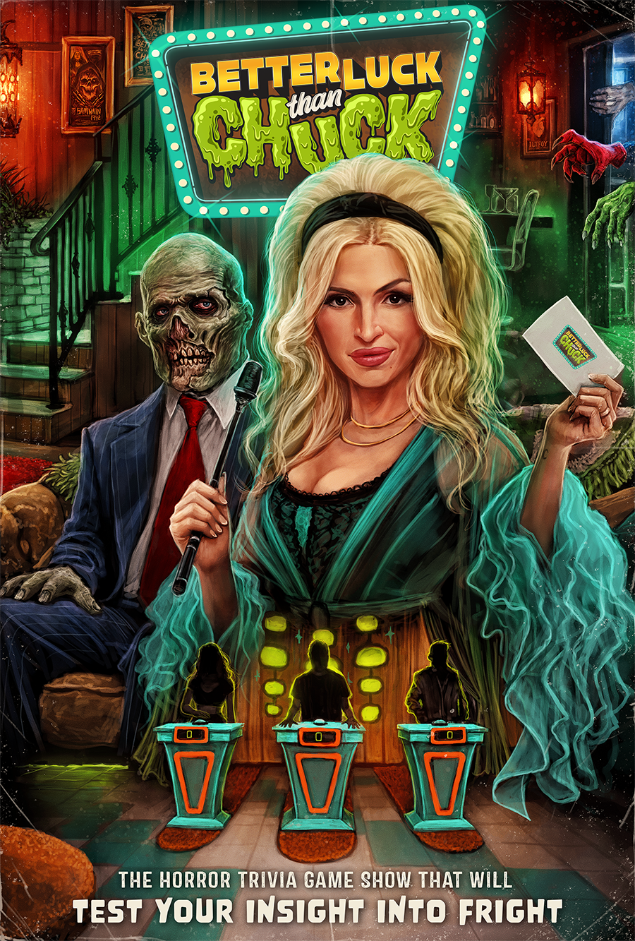 A spooky, kooky mix of MTV’s Remote Control, Comedy Central’s Win Ben Stein’s Money, and Nickelodeon’s Finders Keepers, Better Luck than Chuck incorporates numerous topics chosen by its contestants that quiz their horror knowledge - with each cate-GORY taking an entertaining and unique angle on the question/answer process.