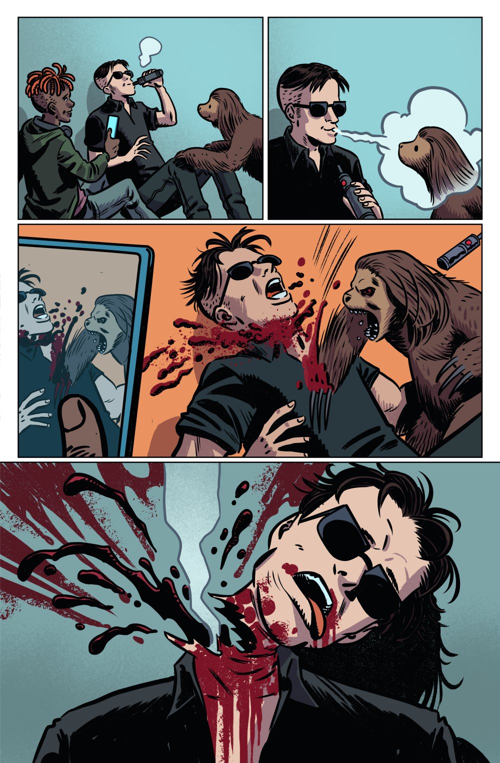 From the twisted mind of Steve Urena, comes a vulgar fun-filled horror-comedy thrill ride that’s full of sloths, slaughter, and slapstick. If you like horror, foul-mouthed teenagers, or murderous sloths, then this comic is for you.