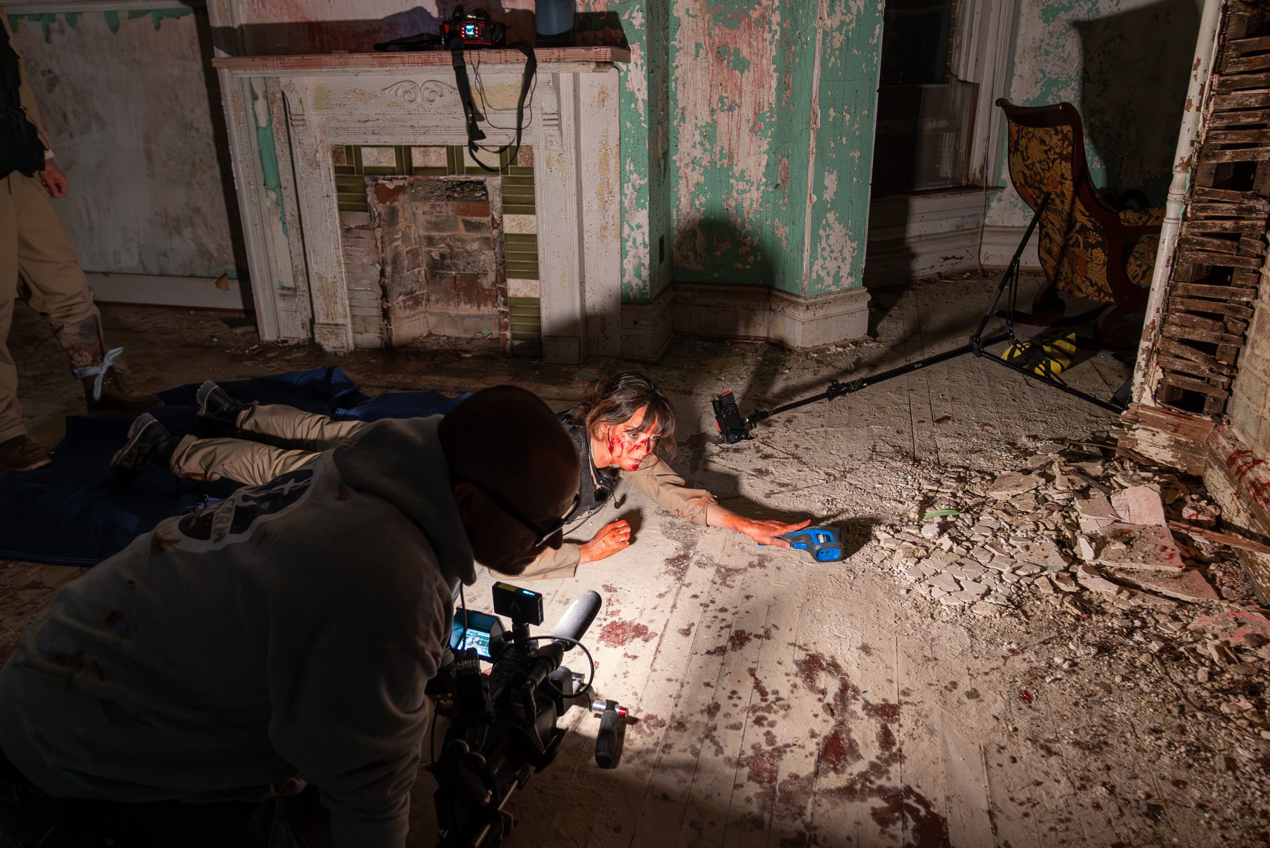 Horror genre favorite Jamie Bernadette (I Spit on Your Grave: Déjà Vu, 4/20 Massacre) leads the cast in a performance filled with grit and fear as the crew battles the supernatural. For two intense weeks, filming took place almost entirely overnight, immersing cast and crew in the chilling atmosphere of the mansion."