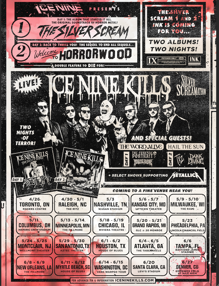 The release arrives as Ice Nine Kills begin to tear through the U.S. on their immersive Silver Scream-A-Thon headline tour—a two-night, double-feature experience featuring both The Silver Scream (night 1) and The Silver Scream 2: Welcome to Horrorwood (night 2) performed in full on respective nights along with fan favourites and deep cuts. The tour is currently underway and includes select stadium stops alongside Metallica on the M72 World Tour.