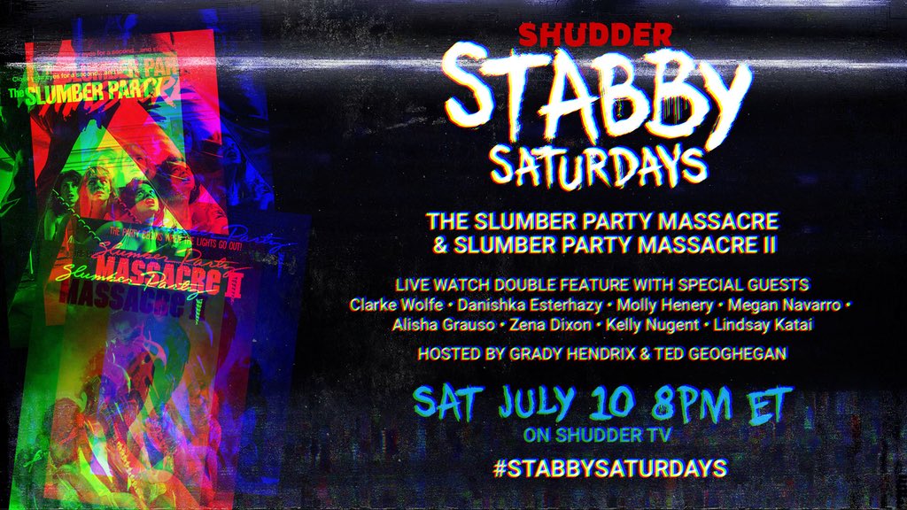 STABBY SATURDAYS on Shudder: "On July 10th and July 17th, author Grady Hendrix is celebrating slasher cinema in honor of the launch of his new novel, "The Final Girl Support Group." The two-week event, called Stabby Saturdays, sees the novelist team up with collaborator Ted Geoghegan (WE ARE STILL HERE, MOHAWK) to screen slasher double features on Shudder alongside a wide variety of female voices in the genre community.