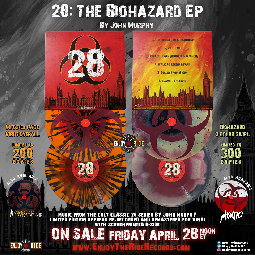 28: The Biohazard EP: "Enjoy The Ride Records and Taped Noise proudly present 28: The Biohazard EP by John Murphy. Composer John Murphy has created the scores to some of the most iconic films of our generation (Lock, Stock and Two Smoking Barrels, Snatch, 28 Days Later, 28 Weeks Later). Pressed on 140g single-sided 12" with a screen printed B side, this EP features re-recorded and remastered tracks and is housed in a 350gsm jacket featuring original artwork by Zachary Brown."
