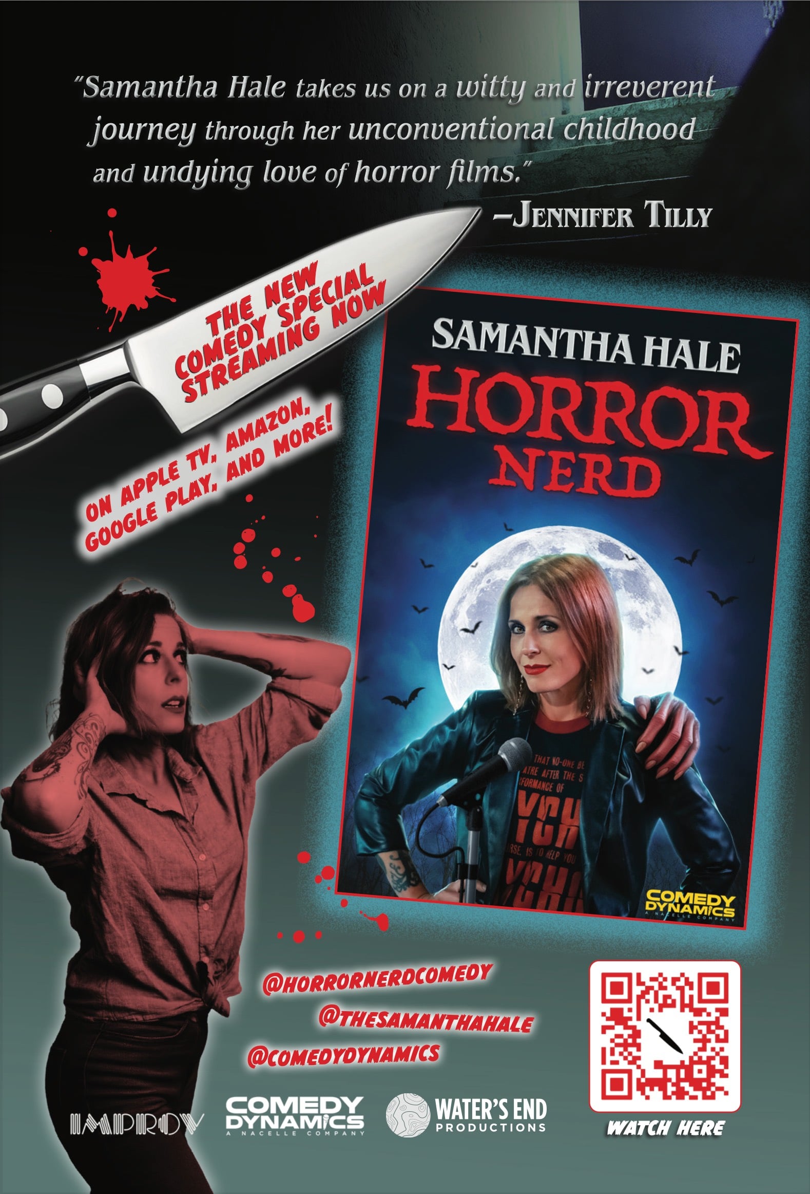 Comedian and lifelong horror devotee Samantha Hale is proving that blood and belly laughs go hand in hand with her new comedy special, Samantha Hale: Horror Nerd. A self-described “final girl with a microphone,” Hale blends razor-sharp wit and deep-cut horror references into a set that’s equal parts spooky as it is laugh-out-loud funny. In the conversation below, she talks about earning her horror cred in front of skeptical fans, why body horror secretly makes the best comedy, and how Horror Nerd became both a celebration and a heartfelt tribute to the genre that’s been her lifelong comfort zone.