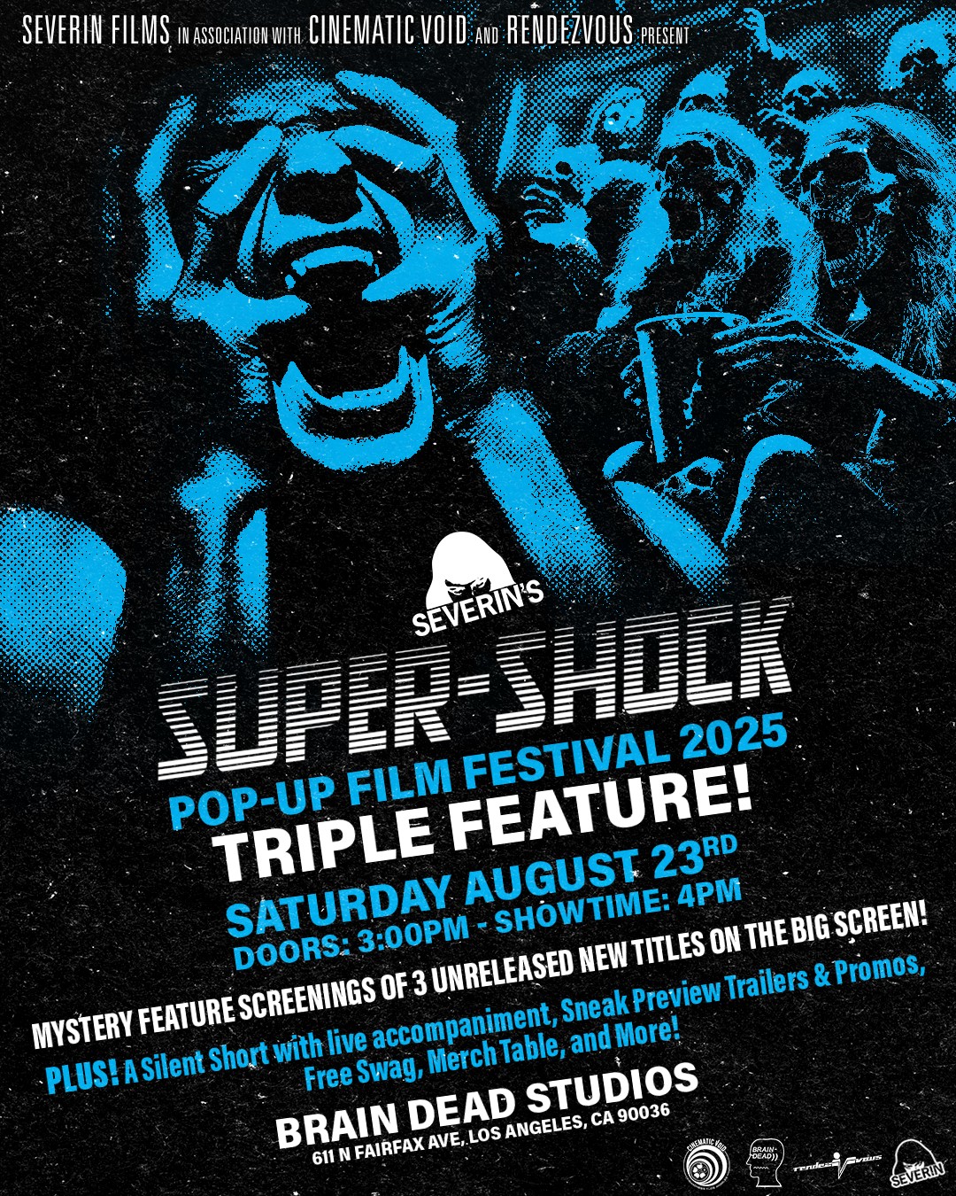 SEVERIN FILMS’ 2025 SUPER-SHOCK POP-UP FESTIVAL RETURNS WITH MYSTERY TRIPLE-FEATURE: "In their most anticipated fan-centric live event of the year, Severin Films’ Super-Shock Pop-Up Festival returns with a mystery triple-feature that reveals upcoming titles for an infernal fiesta that champions “entertainment with sharp edges”. The event will be held on August 23rd at Brain Dead Studios, 611 N Fairfax Ave, Los Angeles.