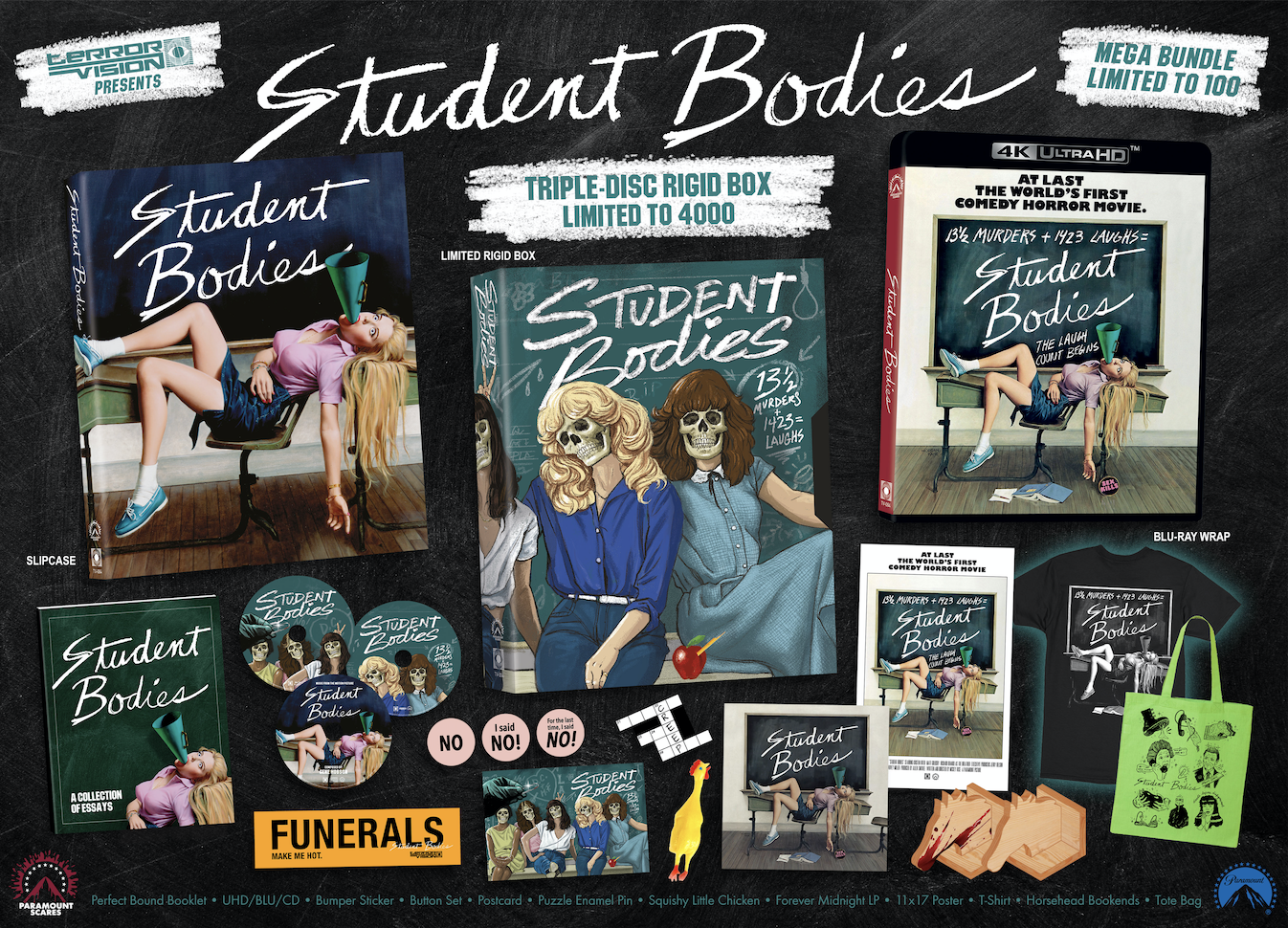 Physical media completists will find Bundle options to fill their backpacks and earn extra credit with themed, collectible bonus items. Those who just can’t wait to find out what’s next should stay tuned to @ _terror_vision_ for hints and clues throughout the week, then get ready to bust doors at Terror-Vision.com first thing every Friday to grab these limited releases before their availability is killed off."