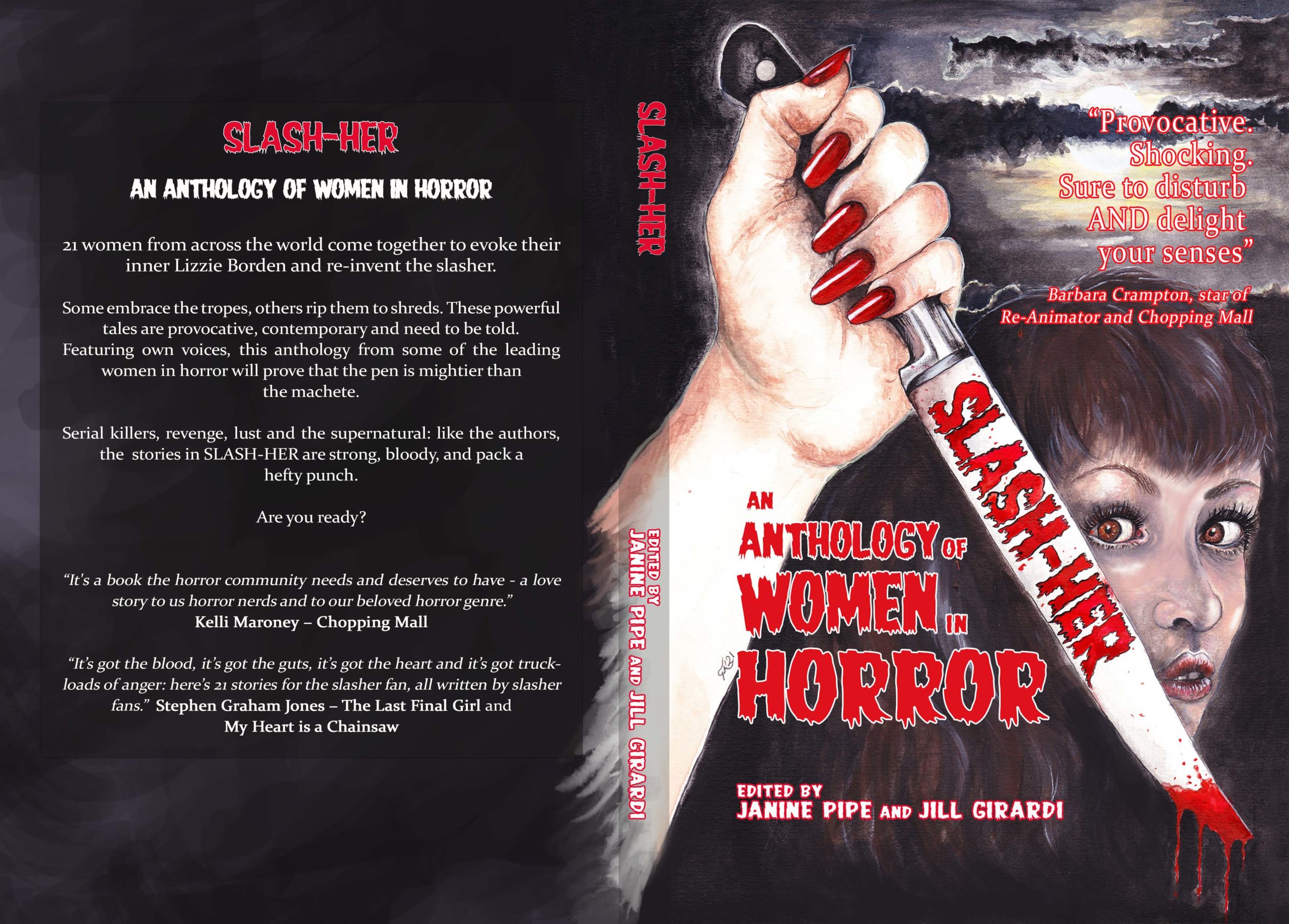 SLASH-HER – A WOMAN OF HORROR ANTHOLOGY from Kandisha Press: "We invited twenty-one women to send us their interpretation of the slasher genre. Whether splattery tales of Final Girls, a slow, quiet look into a killer’s mind or something quite unexpected, each segment has been written with passion and purpose. With own voices bringing their unique perspective, some tropes applauded and others over-ruled, there will be something for everyone. Whether you are a slasher aficionado, a fan of splatterpunk (Kenzie Jennings and Christine Morgan are award nominees) or just looking for something different, each author brings her A Game to the table and just like Sidney, Laurie and Ripely, leaves you wanting more…"