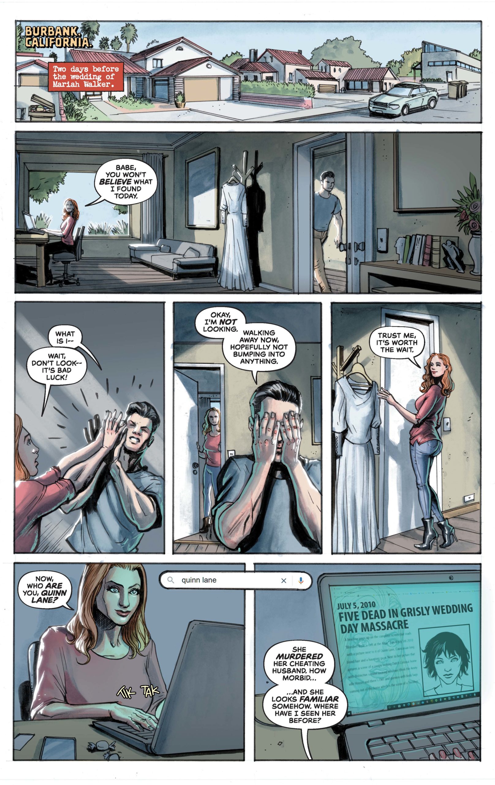 Each issue of THE CONJURING: THE LOVER will also feature a backup story exploring the tales behind the objects collected in Ed and Lorraine’s dreaded artifact room. In Issue #2, Tales From the Artifact Room: The Bloody Bride, from writer Che Grayson (Pigamo) and artist Juan Ferreyra (Green Arrow), looks at the story behind a wedding dress—and the curse it passes on to new brides. Issue #3, available on Tuesday, August 3, will also feature a backup story from New York Times best-selling writer Tim Seeley (Nightwing) and Eisner Award-winning artist Kelley Jones (Swamp Thing).