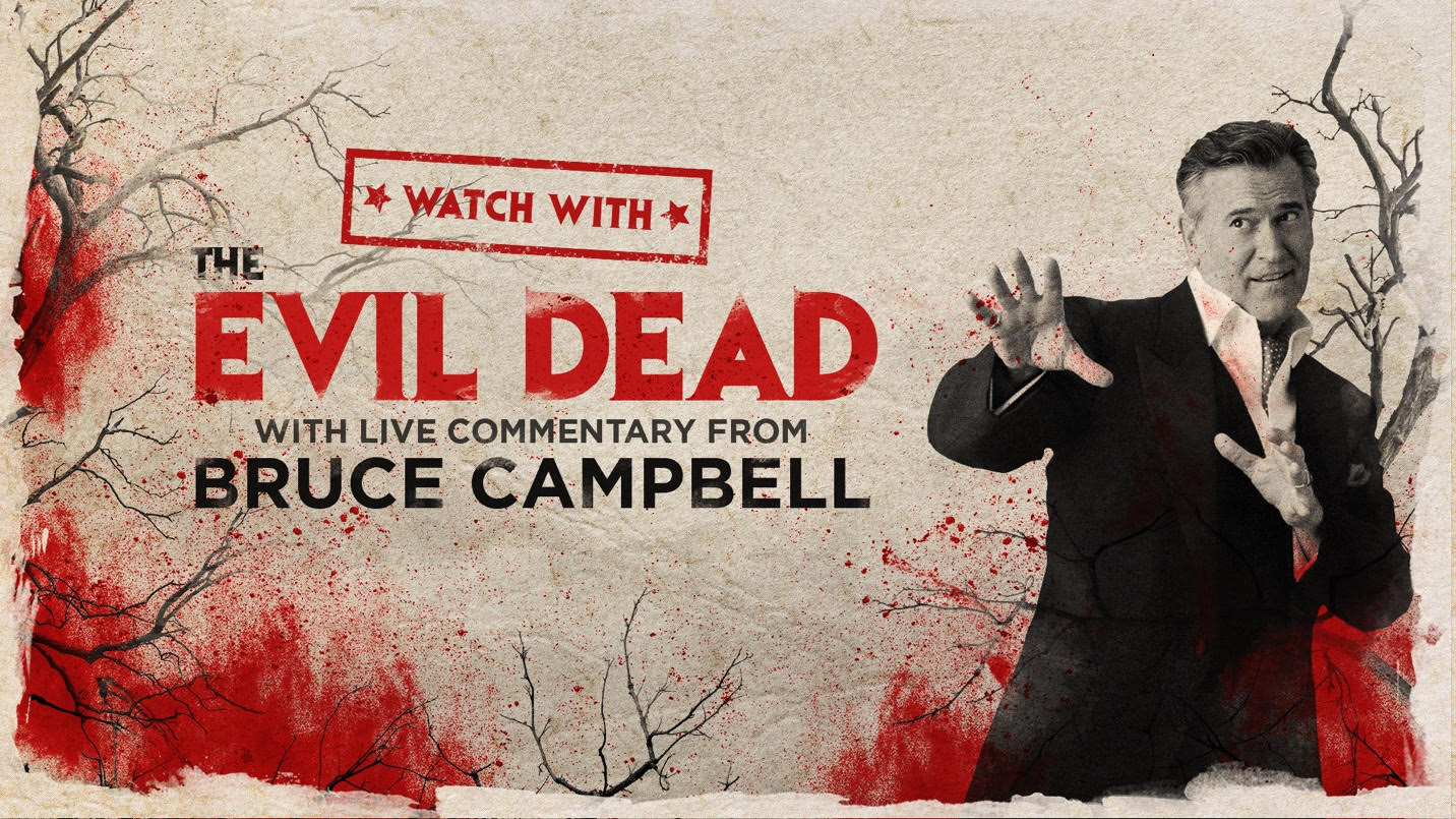 THE EVIL DEAD: WITH LIVE COMMENTARY FROM BRUCE CAMPBELL: "WATCH LIVE Livestreams presents The Evil Dead Watch Party: With Live Commentary from Bruce Campbell. Campbell himself will host the WORLDWIDE virtual viewing party - providing live commentary throughout on Saturday, January 23rd at 6 PM PST/9 PM EST. Fans will experience Campbell’s movie memories, behind the scenes stories, anecdotes from the film, hilarious stories, and for a few lucky viewers, Bruce will even answer questions live from the chat.