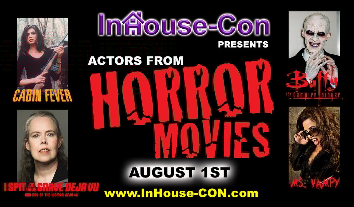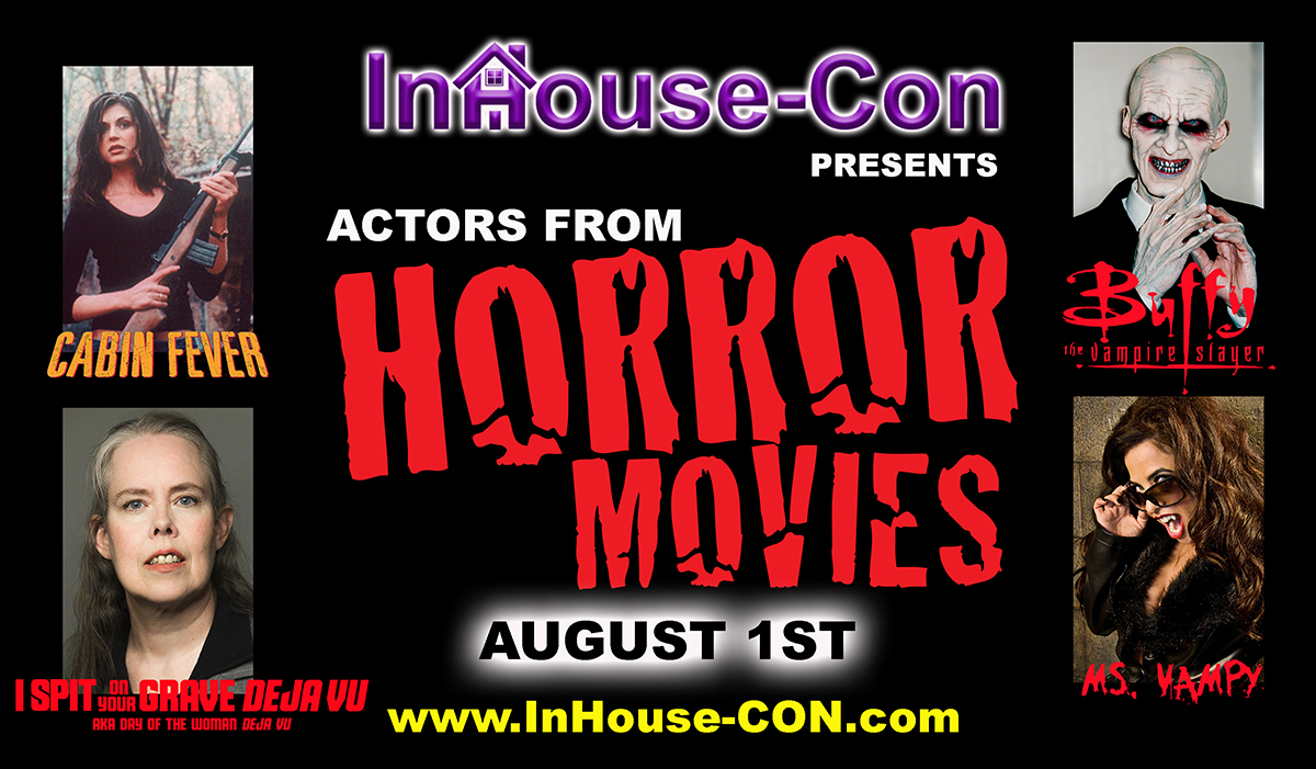 INHOUSE-CON Virtual Horror Convention Announced: "Coolwaters Productions announces horror celebrities virtual InHouse-Con during COVID-19 #StaySafe to be held on Saturday, August 1, 2020 from 3-4PM EST/12-1PM PST. Celebrity guests will include Cerina Vincent (Cabin Fever), Brooke Lewis Bellas (Ms. Vampy), Maria Olsen (I Spit on Your Grave Déjà Vu), and Camden Toy (Buffy the Vampire Slayer).
