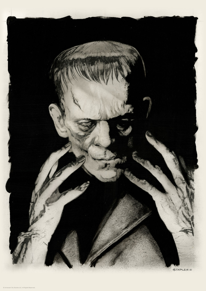'For me the classic Universal Monster films have been engrained into me since I was a child, not only with their legendary visual design and makeup but because they are almost not of this world. To me they are the purest form of escapism and something that simply couldn’t be made in this day and age. I decided to approach these illustrations a little differently by choosing to try to add a bit of realism, hopefully to capture a small part of their character so wonderfully portrayed by Boris Karloff and Bela Lugosi. This really was an honour.'