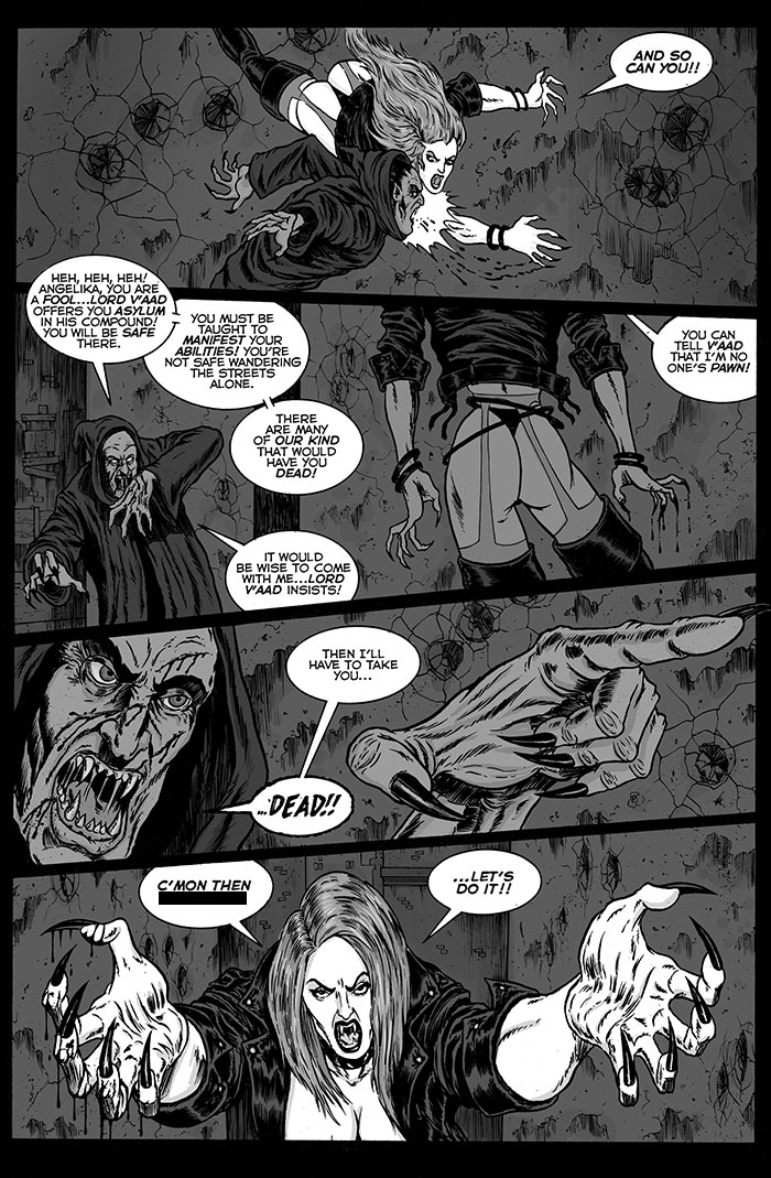 THE VAMPIRE VERSES SYNOPSIS: "The debut issue introduces Angelika, an exotic dancer in the NYC club scene who is unwittingly turned into a creature of the night. As she tries to make sense of what she has become she learns of a bloody Vampire War that is being fought in the streets and subway tunnels of New York City. Slowly the truth unfolds as Angelika begins to realize she is a key part of an ancient scrolled prophecy known as The Vampire Verses.
