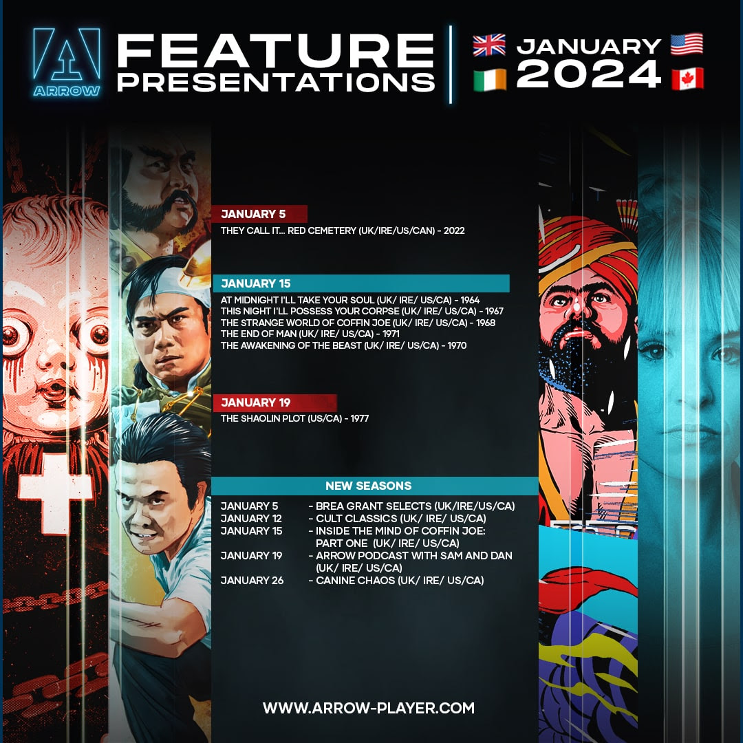 Streaming January 2024: ARROW's SVOD Lineup Kicks off New Year With Brea Grant, Cult Classics, Coffin Joe & Canine Chaos: "London, UK - Arrow Video is excited to announce the January 2024 lineup of their subscription-based ARROW platform, available to subscribers in the US, Canada, the UK and Ireland.