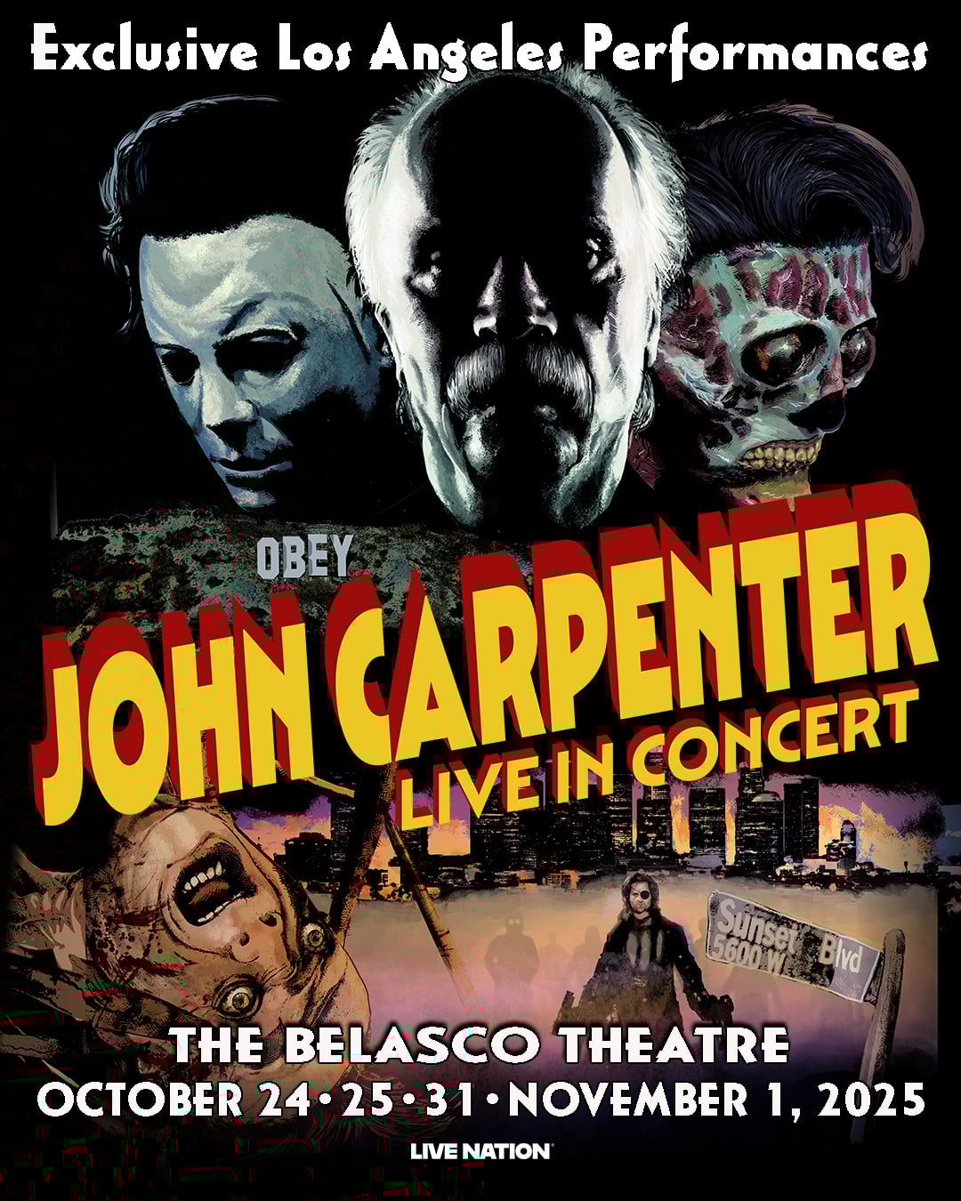 John Carpenter wouldn’t have looked totally out of place in a tuxedo during his recent residency at The Belasco in Los Angeles. On the cool night of the Dodgers’ World Series win—which had a few fans half-joking, Would Carpenter end the concert early to catch the game?—Carpenter led the band like he was leading an orchestra… except with devil-horn fingers. Lots and lots of charming, Carpenter-esque devil-horn fingers.