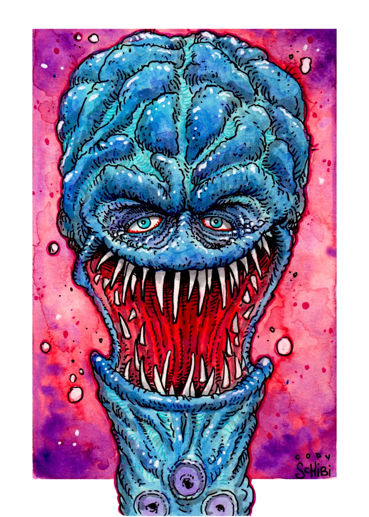 I ran across the work of artist Cody Schibi last year during several of the tweet alongs that usually break out during the live airings of The Last Drive-In on Shudder and was immediately drawn to his imaginative work that was filled with so much personality and a horrifying sense of whimsy as well. Schibi will be back to his old tricks when The Last Drive-In returns later this month, but in the meantime, here’s a Q&A to help you get to know this talented artist who is clearly passionate about horror and art—two of my very favorite things.