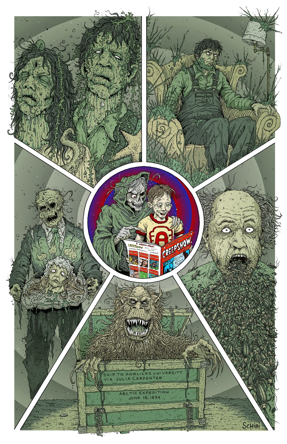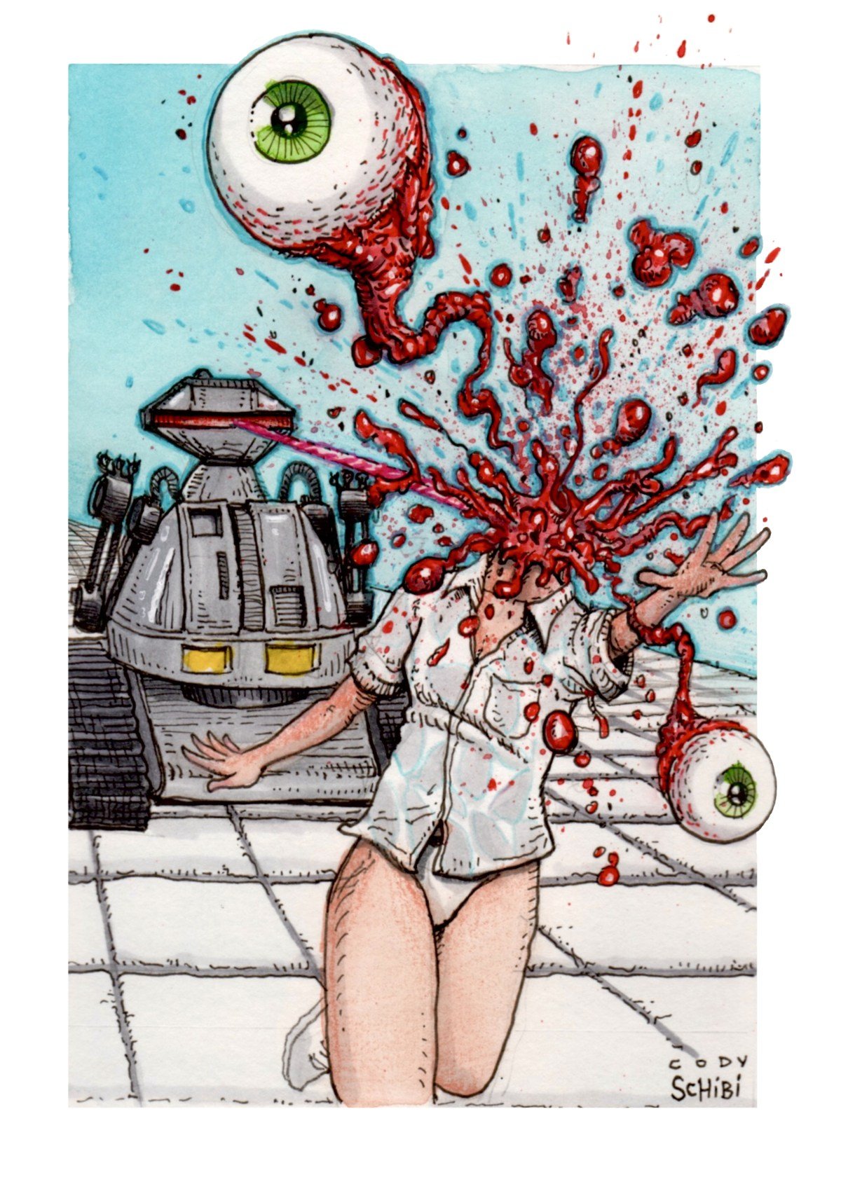 Cody Schibi: Someone once called my art “gracefully grotesque,” and that's a description that has stuck with me. When creating pieces of art, especially horror themed, I usually try to make the person looking at it find some kind of beauty, or even humor, in it. I mean, it’s challenging & sometimes impossible if you’re drawing a scene from Bloodsucking Freaks or just a gore-filled image, but I do try to have the viewer’s eyeballs at least appreciate the piece or work put into it. I approach everything I do with humor as well and I think, or hope, it translates in my art.