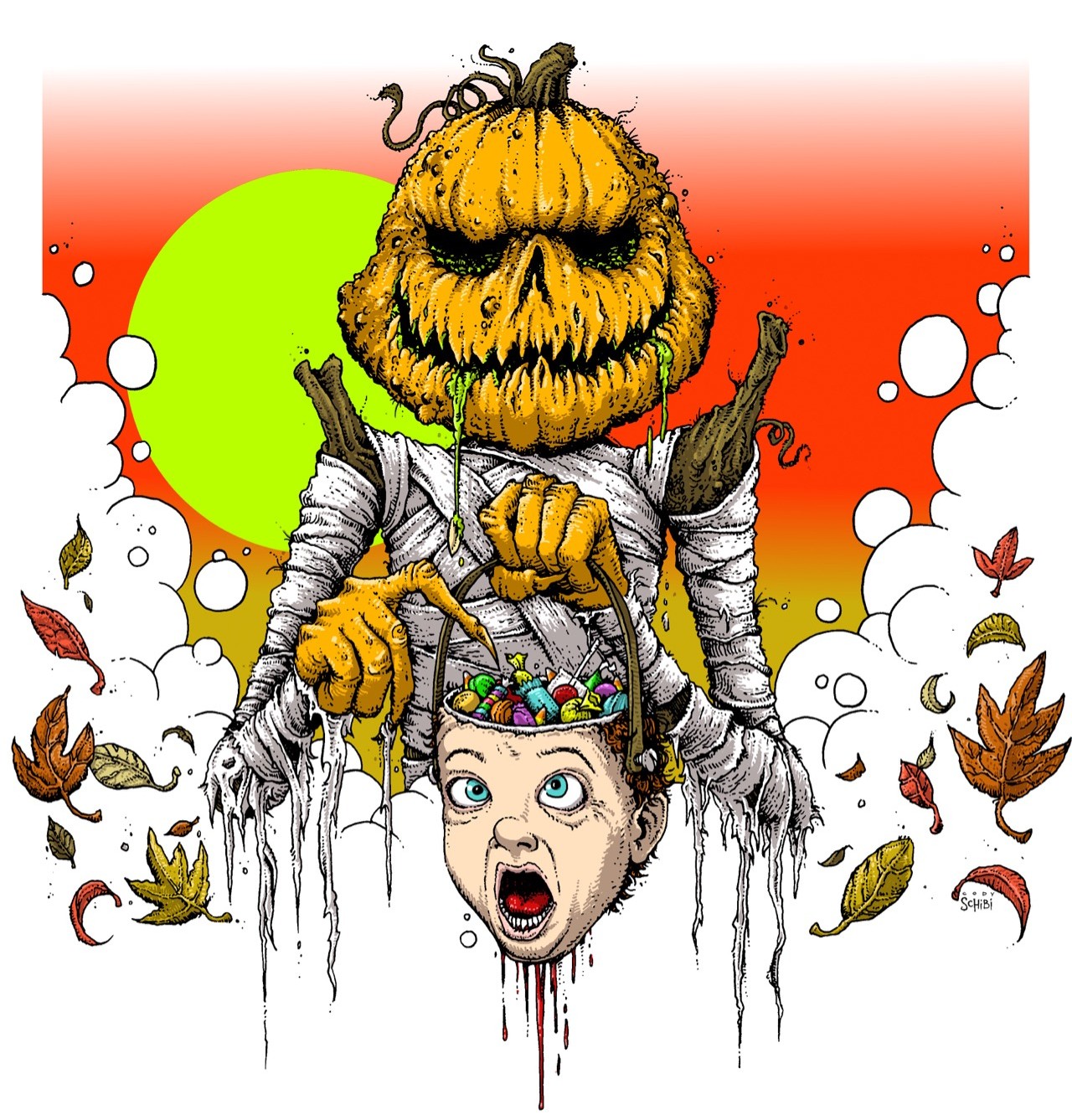 Cody Schibi: I have always been a fan of horror. It’s this magical genre that consumes me and makes me feel every emotion. Going back to my parents, they’d allow my twin brother and I to rent whatever movies we wanted, and when we scoured the aisles of our local video store, the VHS covers of the horror section spoke to us. Just those images, and collecting/looking through Fangoria obsessively, directed what I truly enjoyed to draw. Creating horror-themed art has, and will always, make me ridiculously happy. There’s a comical element to it that a lot of people miss and simply brush off as “disgusting” or “there’s something wrong with you for drawing that!” And even though they’re probably right, it continues to entertain me and make me laugh.