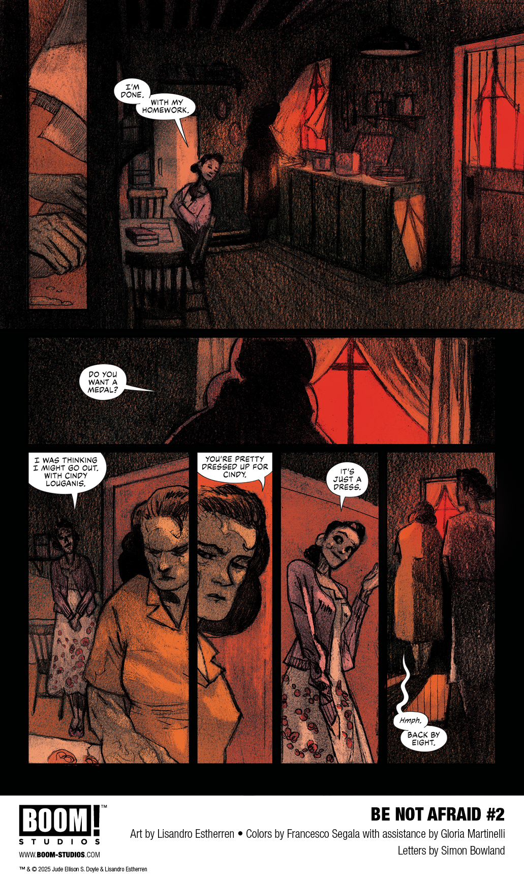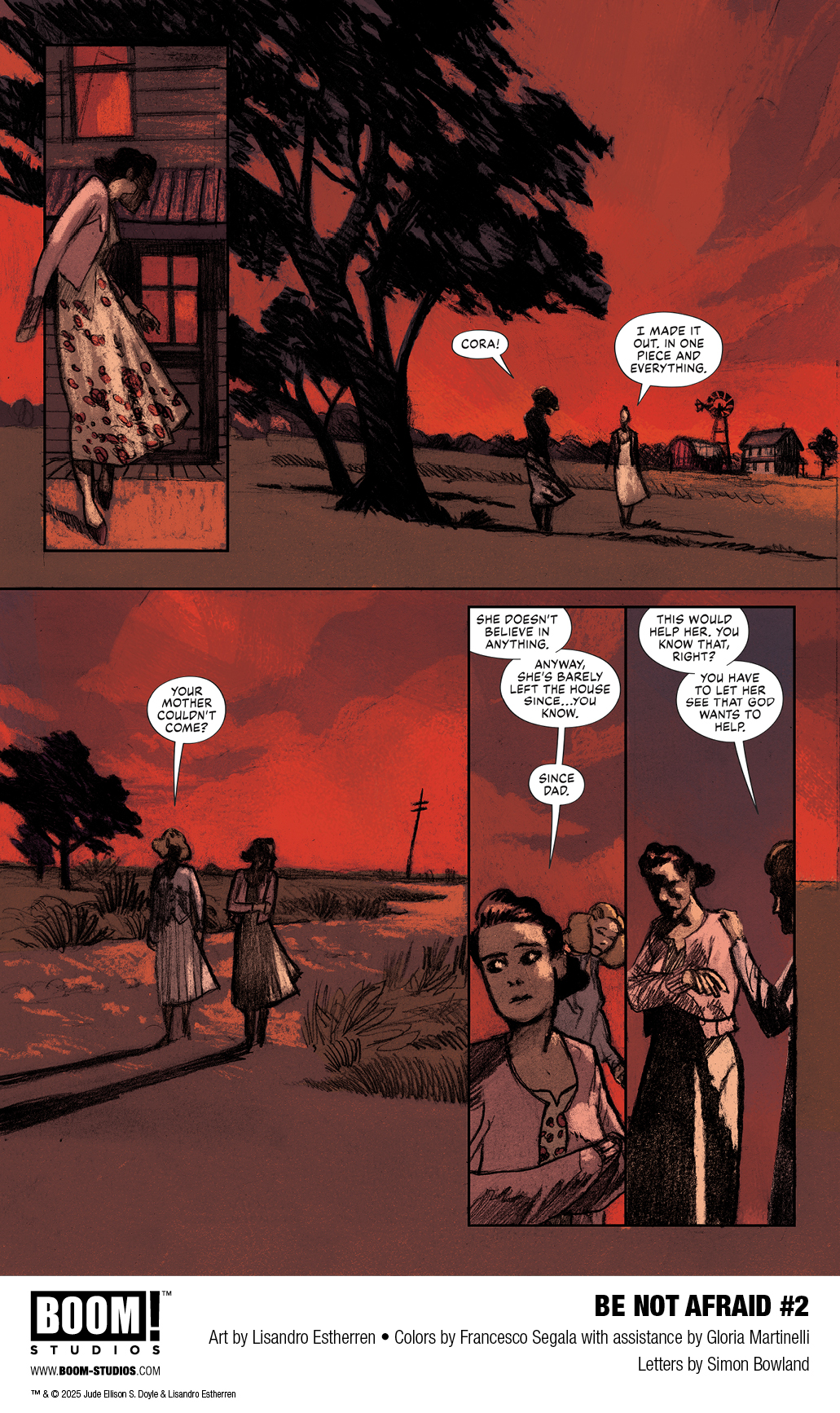 BE NOT AFRAID #2 will be available in comic shops July 16th and is available for pre-order at your local comic shop. Digital copies can be purchased from multiple platforms, including Kindle, iBooks, and Google Play. For the latest news on BE NOT AFRAID and more from BOOM! Studios, visit: www.boom-studios.com