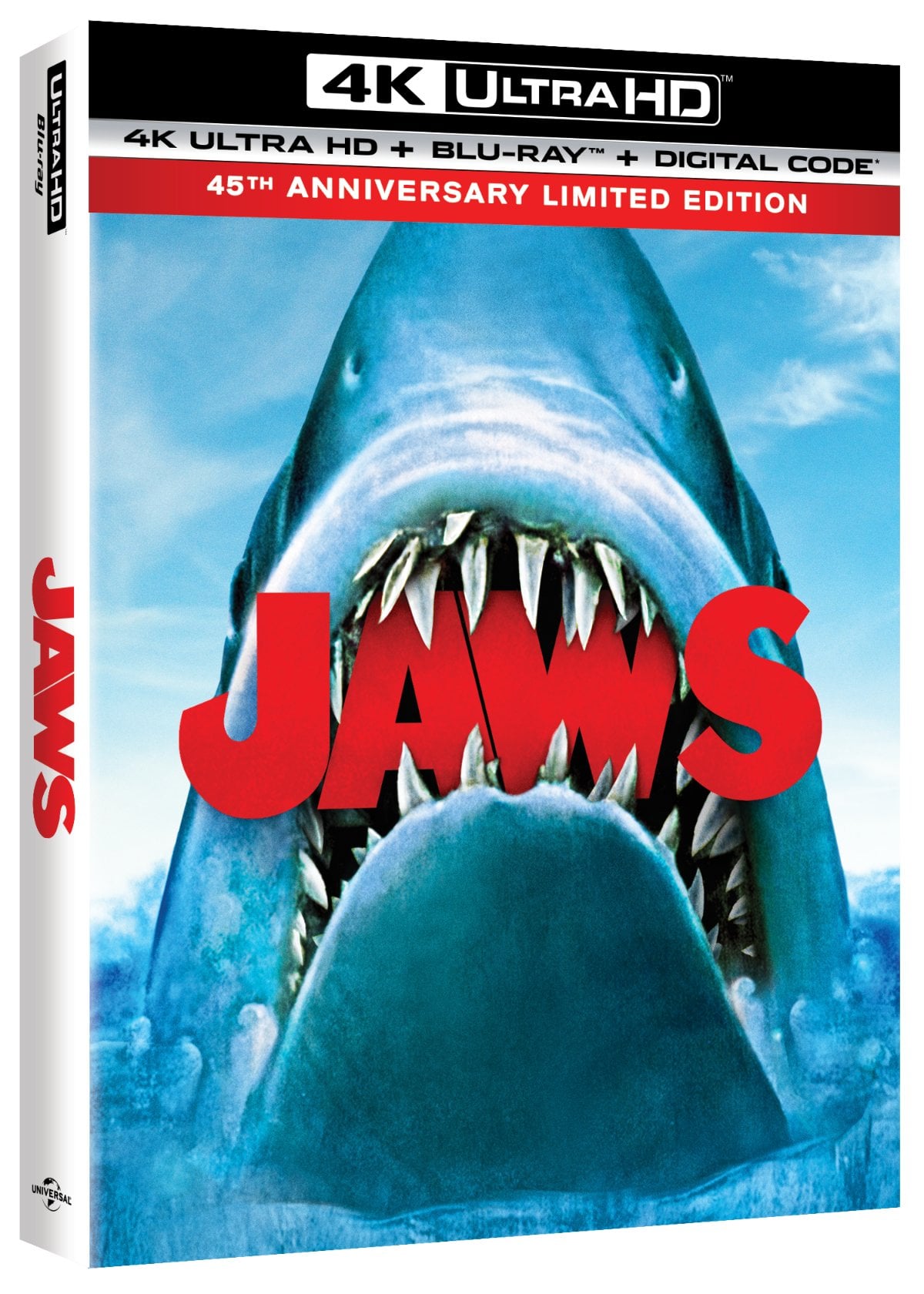 JAWS 45TH ANNIVERSARY LIMITED EDITION will be available on 4K Ultra HD combo pack, which includes 4K Ultra HD, Blu-ray™, & Digital Code.