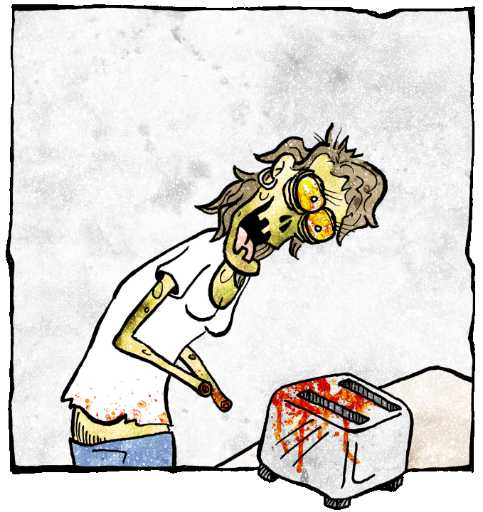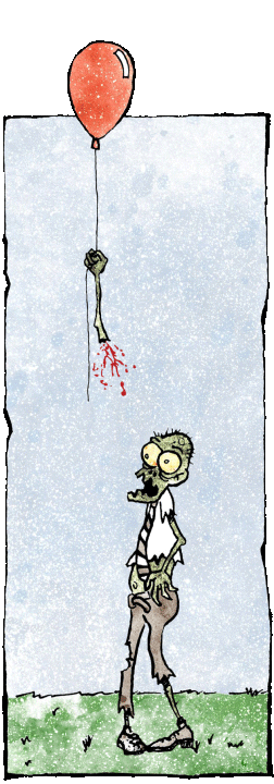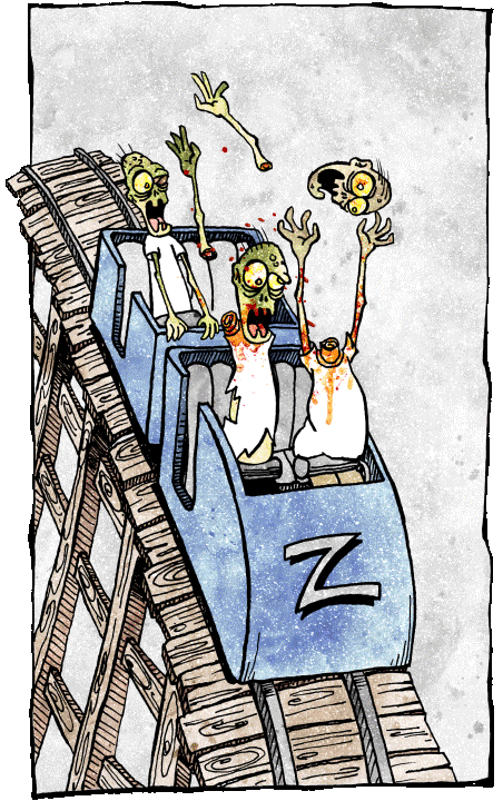 "The origin of Zomics: While camping with my wife and kids we started discussing what life would be like if there really were zombies. We decided that it would be a little scary, a little gross and a lot of funny. This was the birth of the single panel zombie comic strip, or ZOMICS for short."