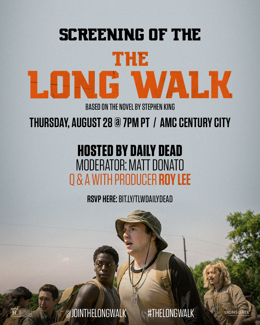 HOW FAR COULD YOU GO? Join Lionsgate and Daily Dead at a free early screening of THE LONG WALK in LA to find out! Following the screening, there will be Q&A with producer Roy Lee that will be moderated by our very own Matt Donato: