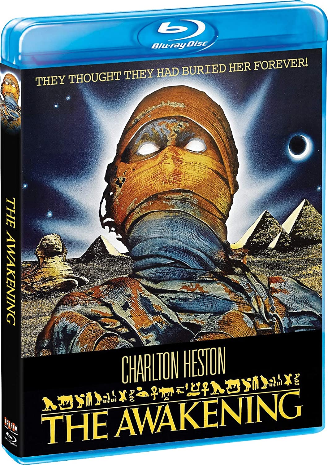 Two-time Academy Award winner Charlton Heston stars as an archaeologist driven to destroy the ancient evil he unleashes when his research causes The Awakening. Matthew Corbeck (Heston, Ben-Hur) is obsessed with finding and opening the tomb of the murderous ancient Egyptian queen Kara, to the point of neglecting his pregnant wife (Jill Townsend, Poldark) even as she delivers their baby. But the evil that Corbeck frees takes possession of his newborn daughter. Now, eighteen years later, Corbeck's daughter, Margaret (Stephanie Zimbalist, Remington Steele), returns to Egypt to meet her father for the first time—and Corbeck must overcome powerful occult forces to destroy the evil he loosed upon the world!