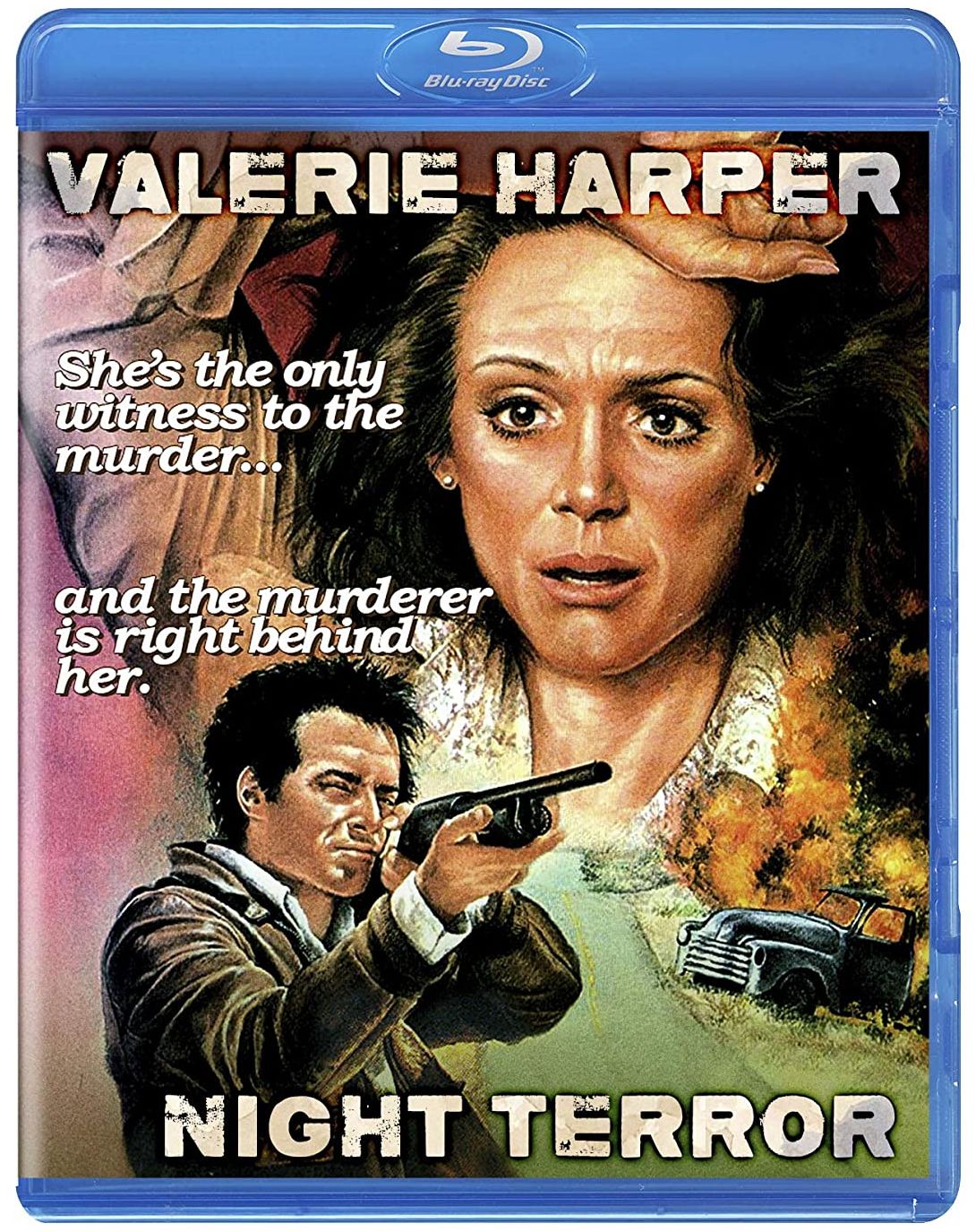 TV legend Valerie Harper (The Mary Tyler Moore Show, Rhoda) stars in this mesmerizing thriller about a terrorized motorist. Carol (Harper) learns that her son has been hospitalized and is in serious condition several hundred miles away. Her husband (Michael Tolan, All That Jazz) is out of town and cannot be reached, desperate to be with her son, she’s forced to start out alone on the long, barren drive from Phoenix to Denver. Very late at night and almost out of gas in an unfamiliar area, Carol notices a highway patrolman ticketing a speeding motorist, as she approaches them for directions to the nearest gas station, the officer is suddenly shot by the motorist. Carol, in panic, drives off in terror―but not before the killer has seen her. The nerve-jangling events that follow are the tale of Carol’s frantic efforts to reach help―before she’s the killer’s next victim. Night Terror also-known-as Night Drive was stylishly directed by television veteran E.W. Swackhamer (The Dain Curse) and features a stellar cast that includes Richard Romanus (Mean Streets), Nicolas Pryor (Risky Business), John Quade (Every Which Way but Loose), Quinn Cummings (The Goodbye Girl) and Dinah Manoff (Grease).