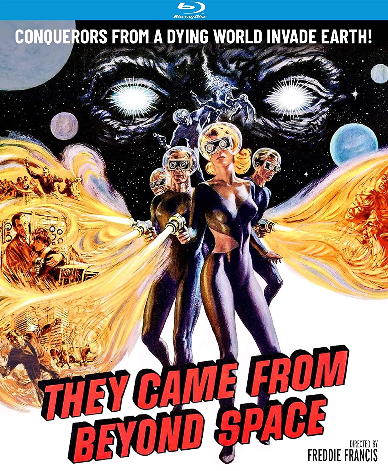 From Freddie Francis, the legendary director of The Evil of Frankenstein, Dr. Terror’s House of Horrors, The Skull, The Psychopath, The Deadly Bees and Tales That Witness Madness, and Milton Subotsky, the acclaimed screenwriter of Dr. Who and the Daleks, I, Monster, Tales from the Crypt, The Vault of Horror and At the Earth’s Core, comes this fast-paced sci-fi thriller in the tradition of Invasion of the Body Snatchers! When meteorites crash-land in the perfect formation of the letter V, the Ministry of Extraterrestrial Life on Other Planets (MELOP) springs into action! Britain’s leading professor on the subject is in charge of finding out what’s going on before it’s too late. Fortunately, he’s got a metal plate in his head, which prevents the aliens from taking over his mind and forcing him into slave labor on the moon! They Came from Beyond Space is an out-of-this-world, out-of-your-mind sci-fi sensation!