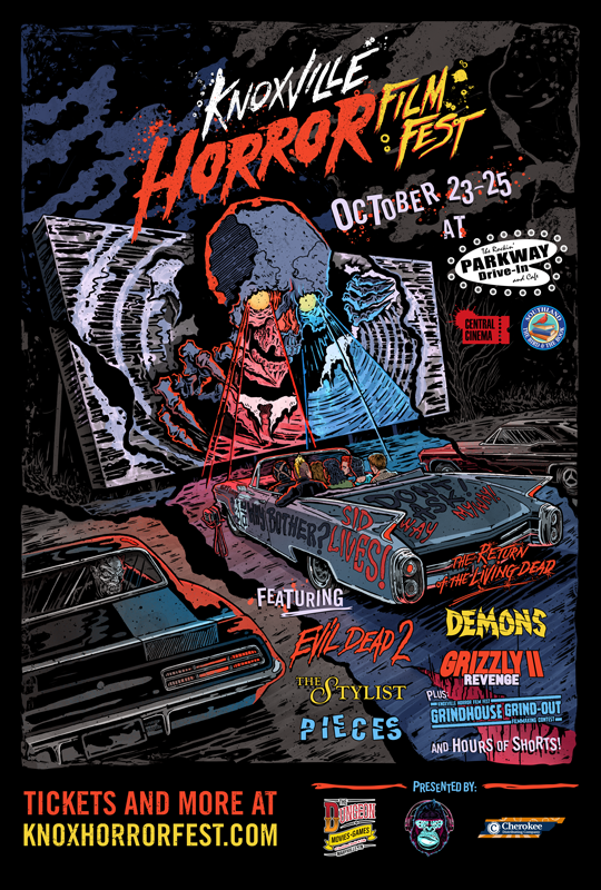From the Press Release: KNOXVILLE, TENNESSEE — The Knoxville Horror Film Fest will present its twelfth annual weekend of cinematic scares Friday, October 23 through Sunday, October 25, with programming split between Maryville, Tennessee’s Parkway Drive-In, the nearby The Bird & The Book, and the festival’s home base at Central Cinema in Knoxville.