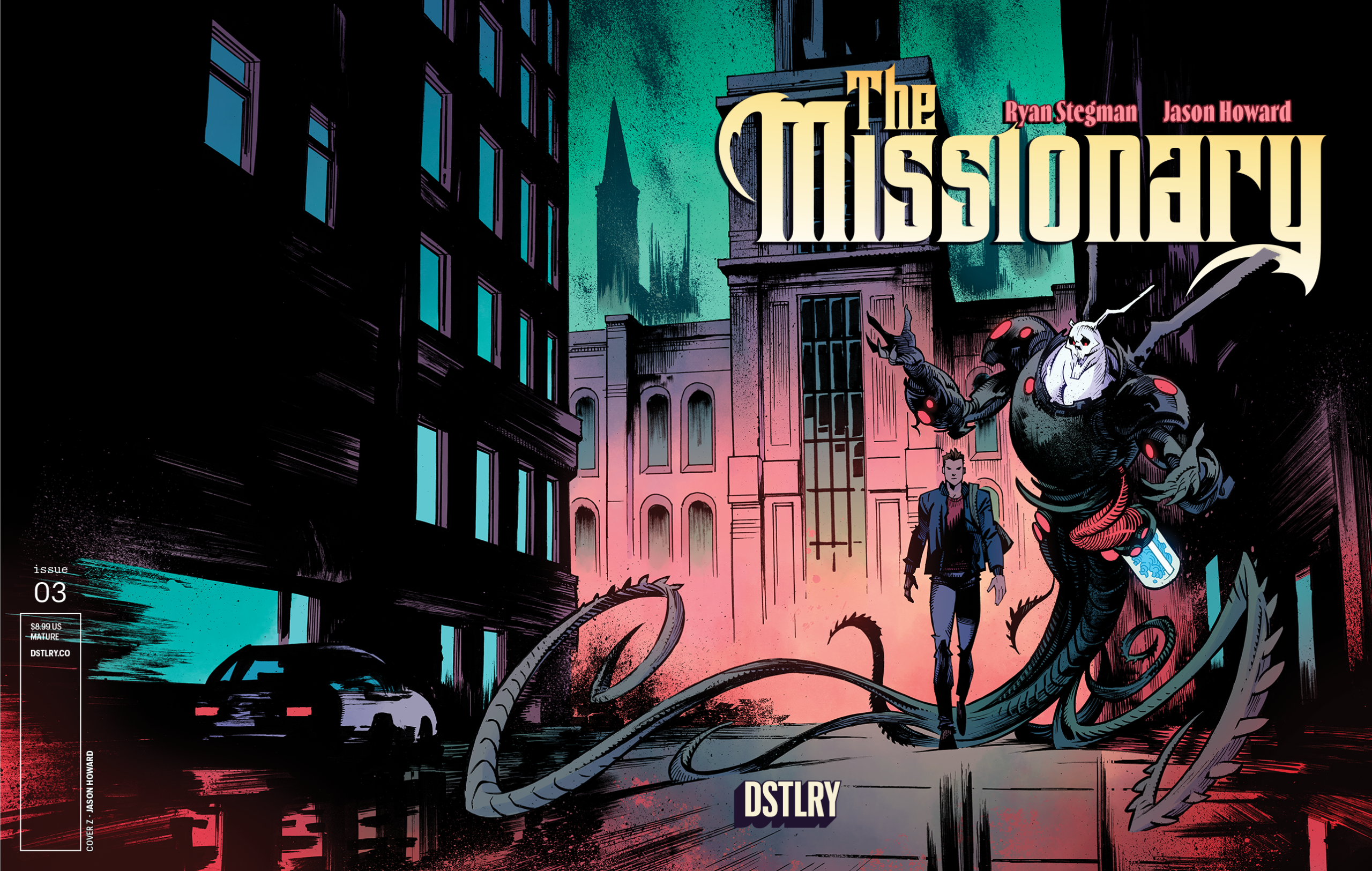 THE MISSIONARY #3 features colors by Tamra Bonvillain and letters by Shawn Lee. To learn more or purchase directly from DSTLRY, visit: https://dstlry.co/products/the-missionary-3-howard-cover-a