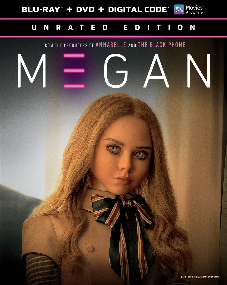 From the Press Release: Universal City, California, February 17, 2023 – She’s more than a toy. She’s family. And now she’s Unrated. Certified Fresh on Rotten Tomatoes with a score of 95%, the year’s most unnerving film M3GAN arrives in an all-new unrated version with revealing extras when you buy on Digital February 24, 2023 and on Blu-rayTM and DVD March 21, 2023 from Universal Pictures Home Entertainment.  The “existentially scary” (Collider) film, presented from Universal Pictures and Blumhouse and produced by Atomic Monster in association with Divide/Conquer, has crossed $167 million at the global box office. M3GAN is produced by masters of horror—Atomic Monster’s James Wan (Saw, Insidious, The Conjuring, Anabelle) and Blumhouse’s Jason Blum (Halloween franchise, The Invisible Man, The Black Phone) and directed by Gerald Johnstone (Housebound). The M3GAN UNRAT3D VERSION delivers more distressing violence and profanity and features never-before-seen bonus content including a breakdown of the creation of M3GAN and behind-the-scenes featurettes showcasing the film’s complex stunts and gory deaths.