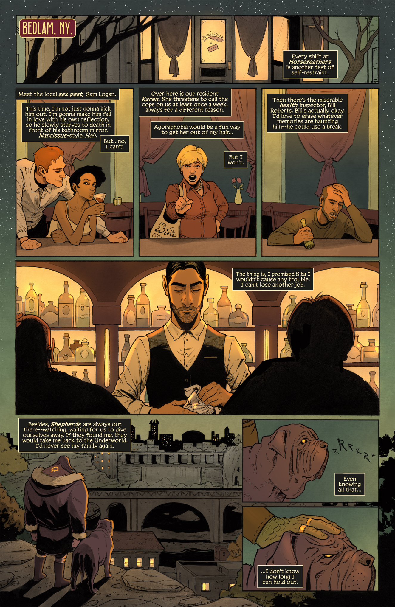 Caitlin Yarsky teamed up with Dark Horse Comics for Living Hell, a dark modern fantasy tale centered on Jerome Jameel, "a loving father and husband who also happens to be a demon": "He’s fled his former prison of Hell to live incognito on earth as a bartender, hiding in plain sight. Jerome is determined to stay out of trouble, but when he kills one of Hell's most vicious bounty hunters in self defense, he inherits the job of infernal bailiff, hunting down his own kind. Jerome soon faces a range of ancient deities and monsters, from the human-eating ghosts known as Jikininki to psychopomps like Baron Samedi. But with every act of betrayal, Jerome loses a little more of his hard-earned humanity."