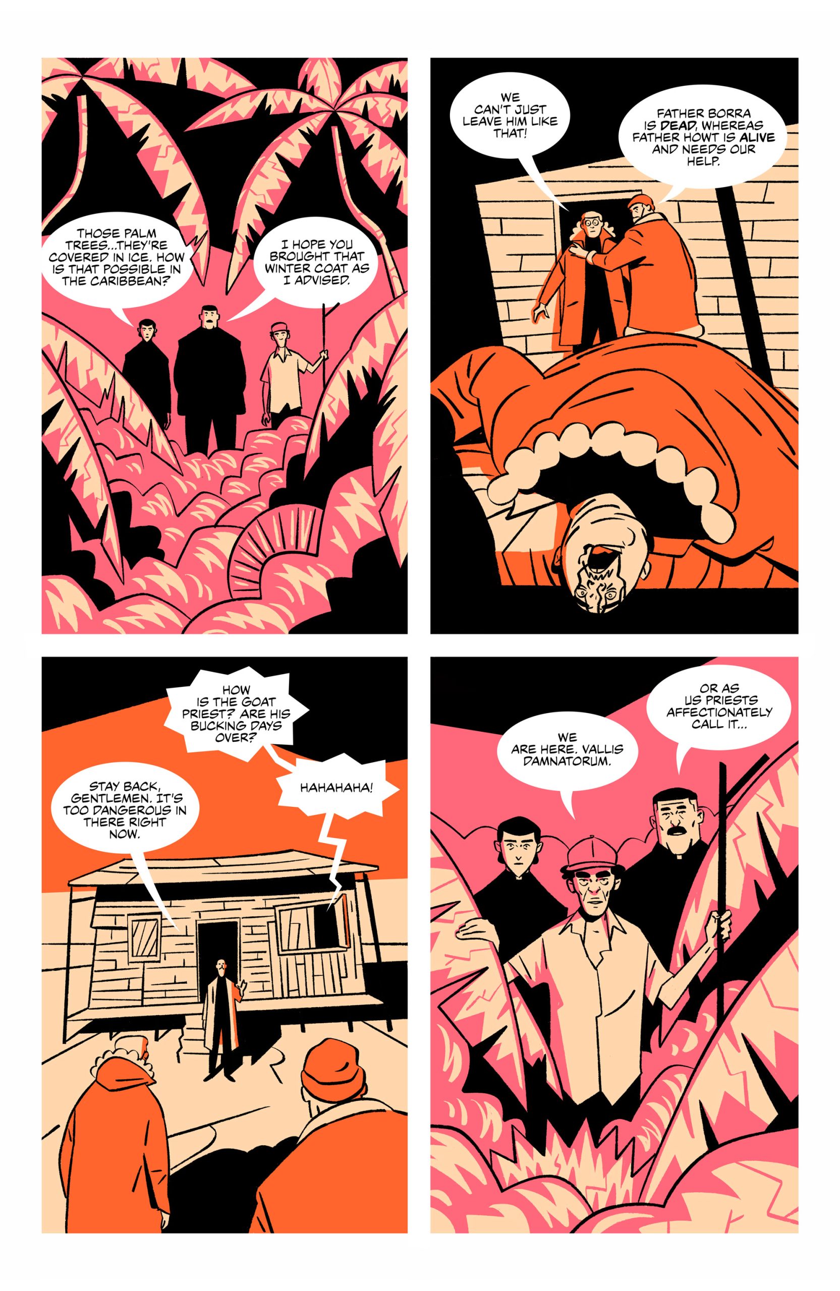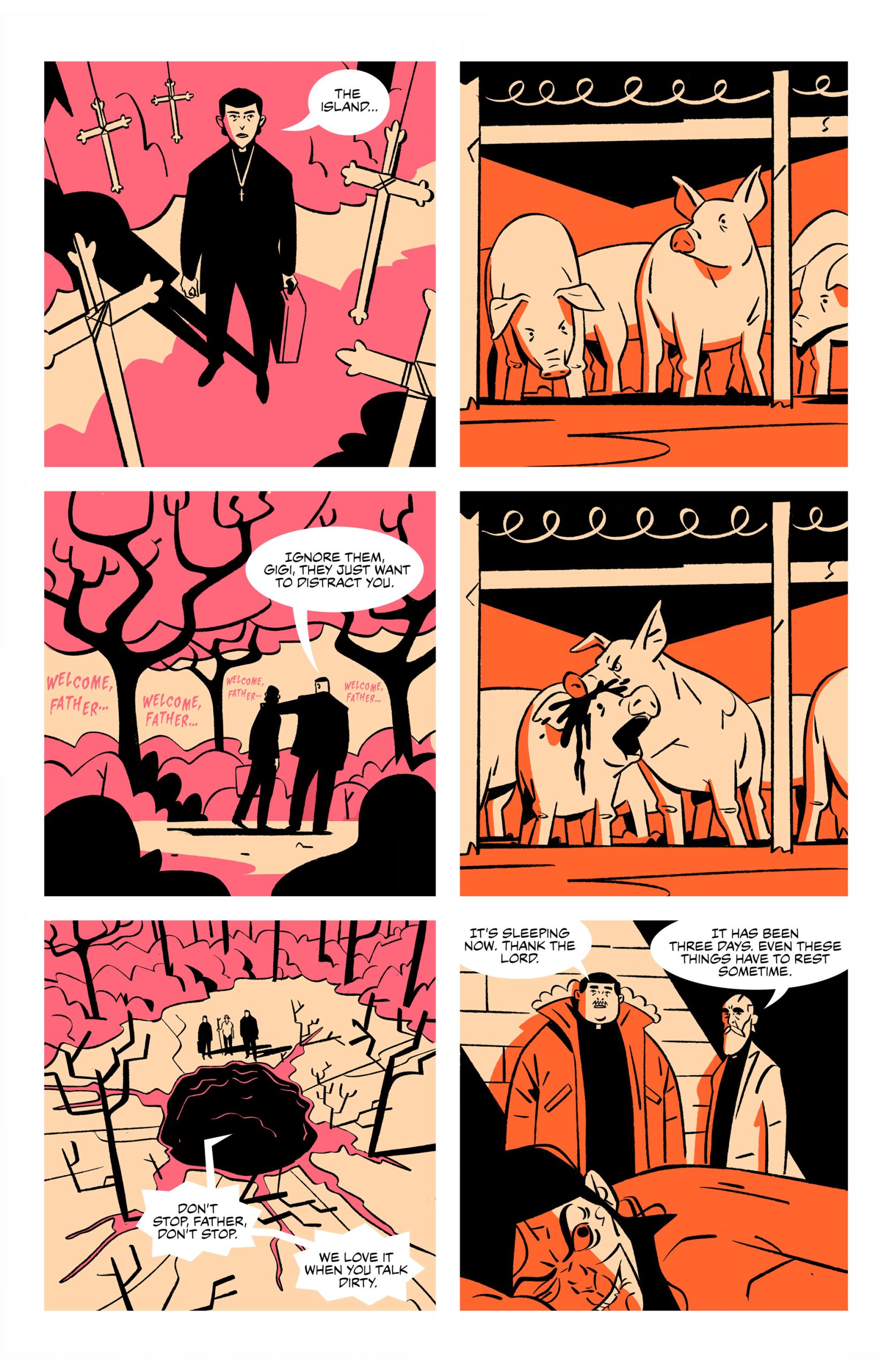 While the thought of a secluded Caribbean beach may conjure up images of tropical paradise and vacation bliss, the island Father Gigi Amato is sent to could instead be best described as "Hell on Earth." Such is the intriguing setup for Exorcism Island, the new five-issue Comixology Originals series from writer Jordan Thomas and artist Chris Matthews that takes place on an island run by the Vatican, where unfortunate priests are given the hellish task of overseeing the island's demonically possessed inhabitants.