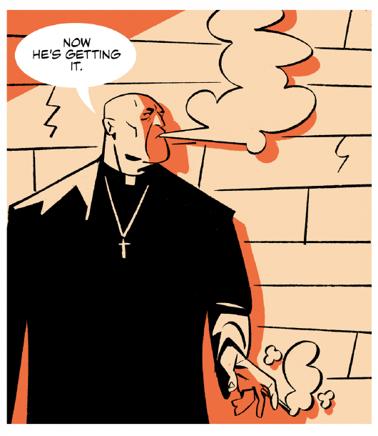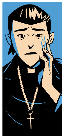 Gigi is an Italian priest who has recently had an encounter with a demonically possessed woman when the story starts. He is the newest member of our gang of exorcists who live on the island struggling with the overwhelming task of managing the many unfortunate souls suffering there. Gigi also brings a great shame with him to the island, something from his past that haunts him. He is a kind, open-hearted man although one confused about his place in the world.