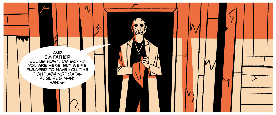 With the first issue of Exorcism Island coming out on October 21st via Amazon’s Comixology Originals digital line, we've been provided with exclusive character art and mini bios that offer a deeper look at the evil lurking within the possessed souls of Exorcism Island as well as the contemplative priests who must fight this unfathomable malevolence while facing personal demons of their own.
