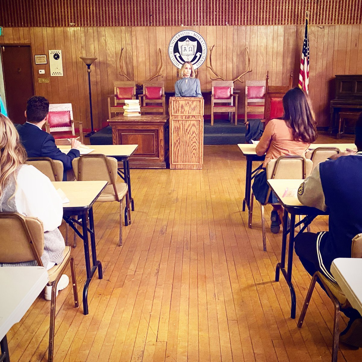 Amanda Wyss portrays the role of Professor McMichaels the campus spirituality expert and the head of the religious history studies branch of Miskatonic U. McMichaels is no fan of both Crawford and his recently passed father’s theory that the world is composed of multiple dimensions and universes and that heaven and hell are imaginary realms.