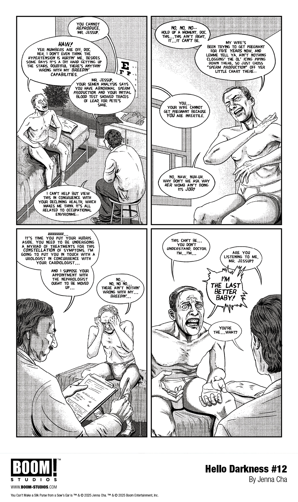 HELLO DARKNESS #12 will be available in comic shops July 9, 2025. It is available for pre-order at your local comic shop. Digital copies can be purchased from content providers, including Kindle, iBooks, and Google Play.
