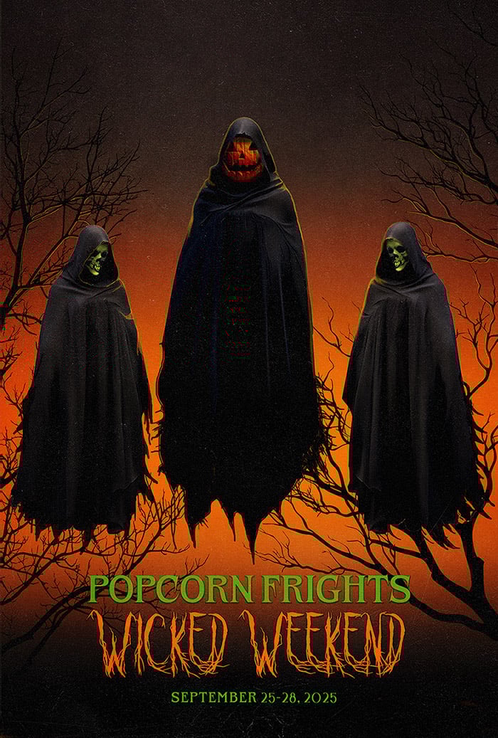 Press Release: September 2, 2025 // – Sharpen those fangs, polish your pitchforks, and prepare your popcorn offerings to the dark gods of cinema, because Popcorn Frights’ Wicked Weekend is back to possess your senses September 25–28 at the historic Gateway Theater. With six electrifying presentations over four nights that celebrate the outrageous, the unholy, and the gloriously unhinged, Wicked Weekend promises to be the ultimate baptism by blood for horror lovers who dare to surrender to the dark gods of cinema!