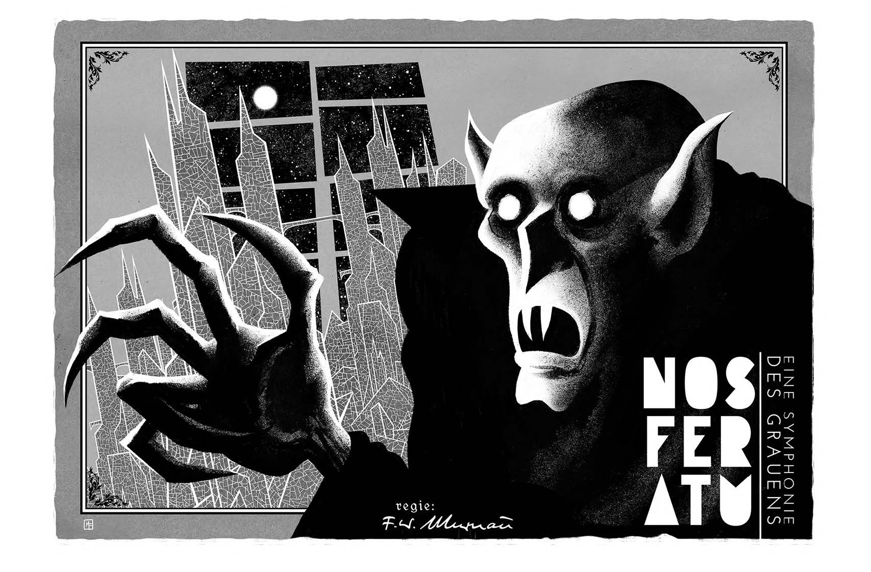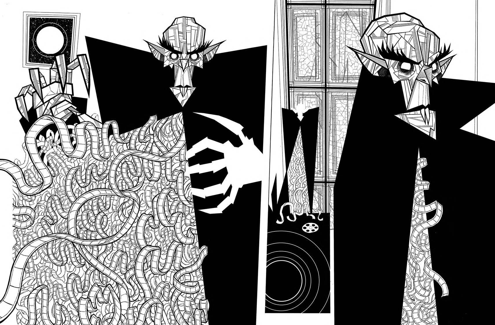Behind the Horror and Death: Nosferatu is Marco Fontanili's "stunning illustrative exploration of the history, life, death, and legacy" of F. W. Murnau's Nosferatu. Fontanili's unique, captivating style results in something truly special for horror fans, and we're excited to share an artwork preview with Daily Dead readers! This project is in collaboration with Invader Comics, who recently launched a Zoop campaign with a variety of benefits for supporters that back the book over the next 30 days.