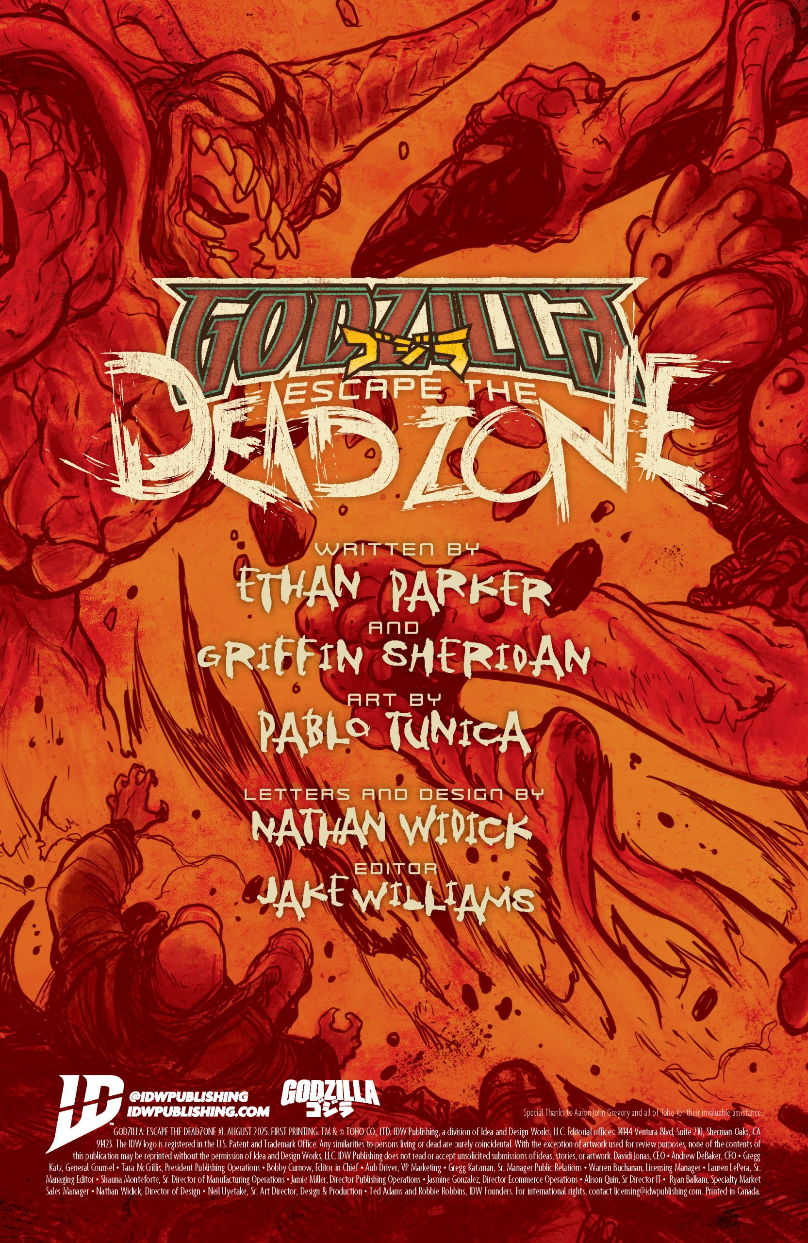 Having read the first issue of Godzilla: Escape the Deadzone, I was instantly hooked on this mysterious new world from writing duo Griffin Sheridan and Ethan S. Parker, along with artist Pablo Tunica, letterer Nathan Widick, and editor Jake Williams. In our latest Q&A, I caught up with Sheridan and Parker to learn more about the birth of this new series, their love of Godzilla, and more. We also have preview pages you can read right now!